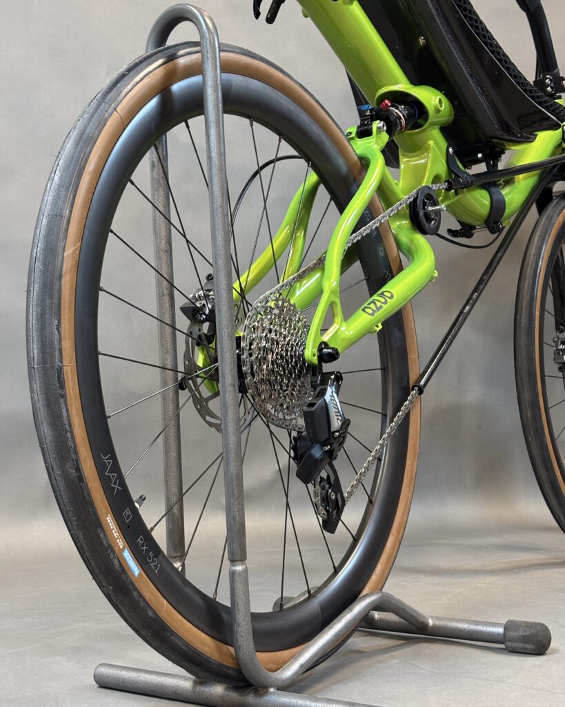 Built for a customer from Switzerland who plans to travel comfortably over long distances, this recumbent bike combines efficiency, comfort, and carefully selected premium components. The result is a highly capable bikepacking recumbent that immediately caught the attention in our workshop — not only for its technical setup, but also for its striking appearance.