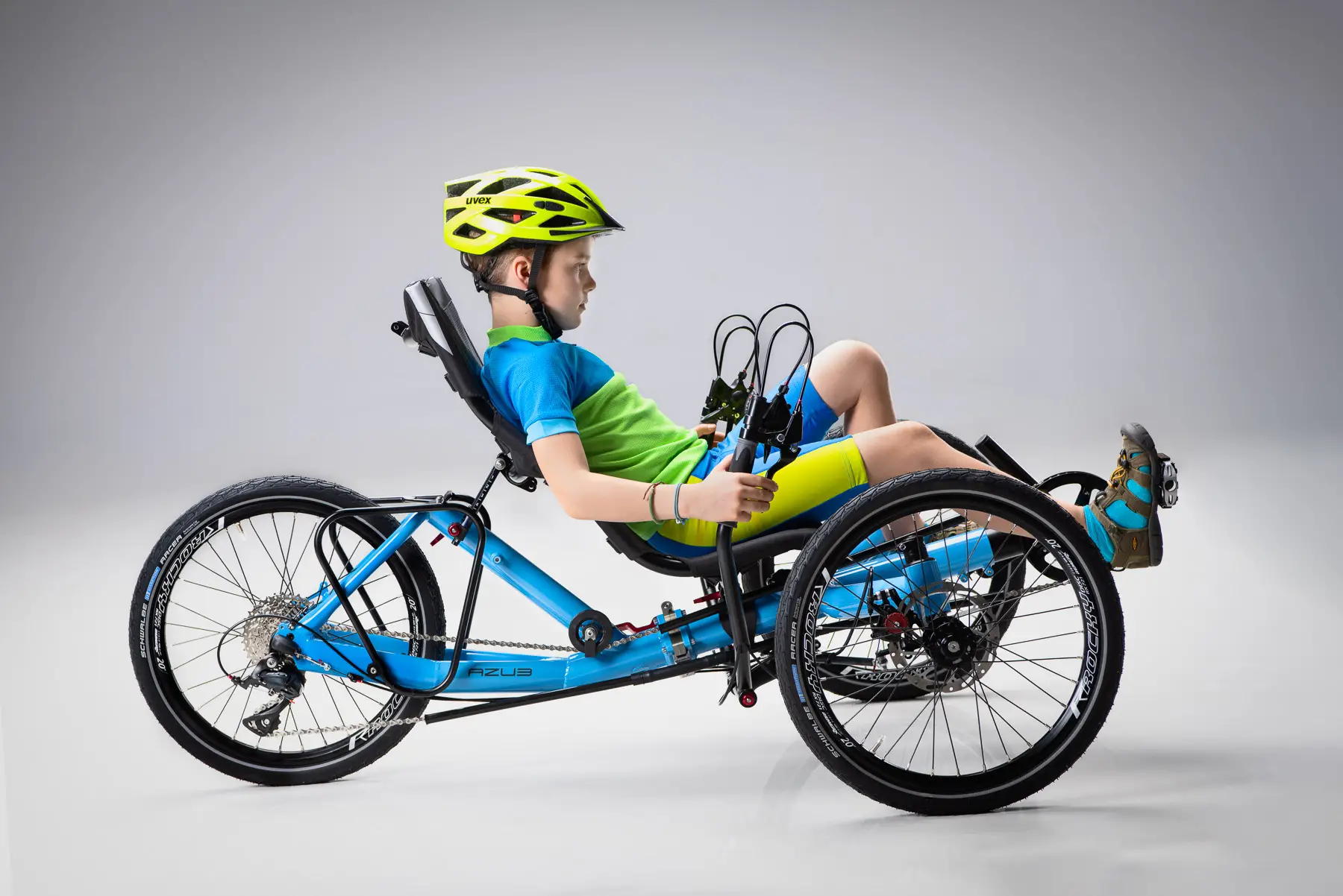 The T-Trisek is based on the successful AZUB T-Tris 20 model, which we have been producing since 2010, and which we have further modified to suit even small riders. The AZUB T-Trisek is therefore intended for riders with a height of at least 135 cm, i.e. 4 feet 3, or even a little less. The maximum size of the rider is then almost unlimited. With the long front boom, it is roughly 180 cm, i.e. 5 feet 11.