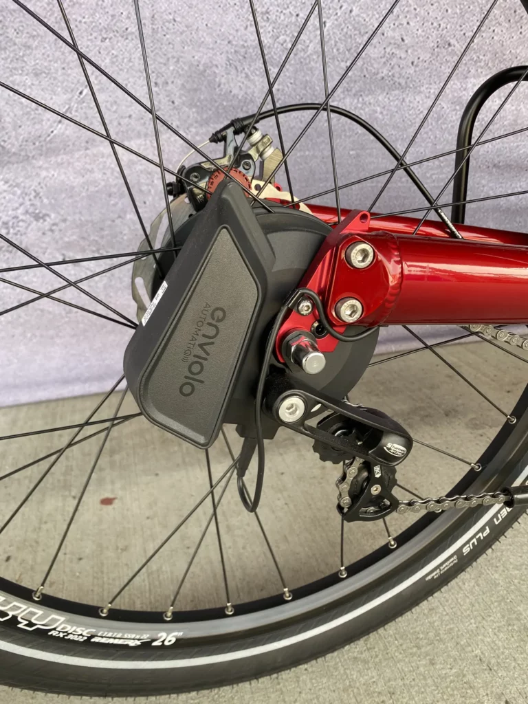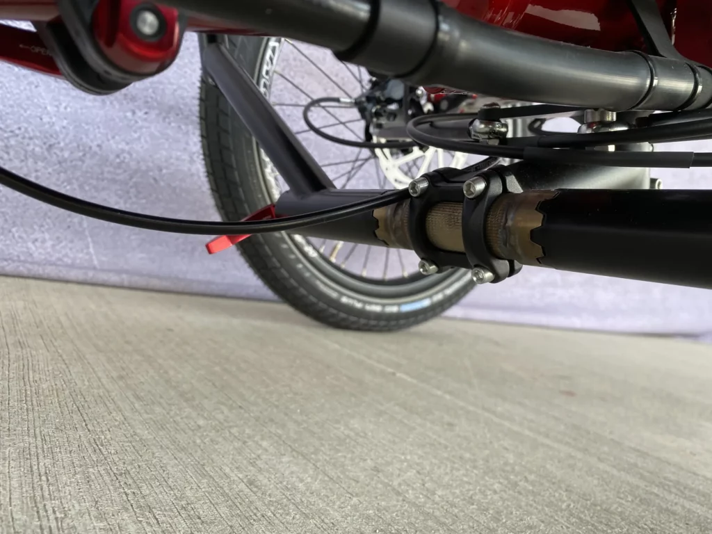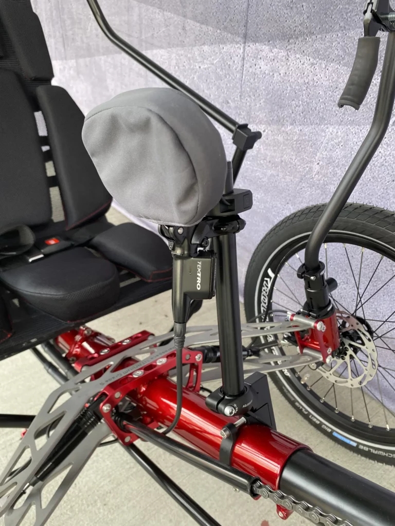 There is no greater reward in our work than when we manage to get someone on a bike who wouldn’t be able to ride it otherwise. We build quite a few of such trikes a year, but some are very specially modified. A few years ago, it was one for Mr. Hos, who rides our AZUB Ti-FLY even though he has no arms and only one leg. This year we built another such machine. Again, it is steered by tilting the upper body, again it can be braked by pushing the knee on the 3D printed brake lever, and again this recumbent trike is equipped with an electric motor and Enviolo automatic shifting. Find out more in the video itself!