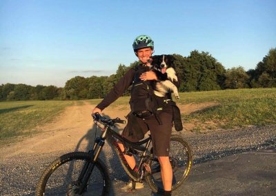 I spend time with my family and friends. I also enjoy cycling, especially with our dog.