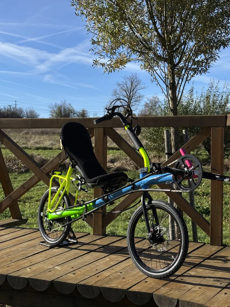 You either love it or hate it. Four different colors on our AZUB ORIGAMI folding recumbent bike.