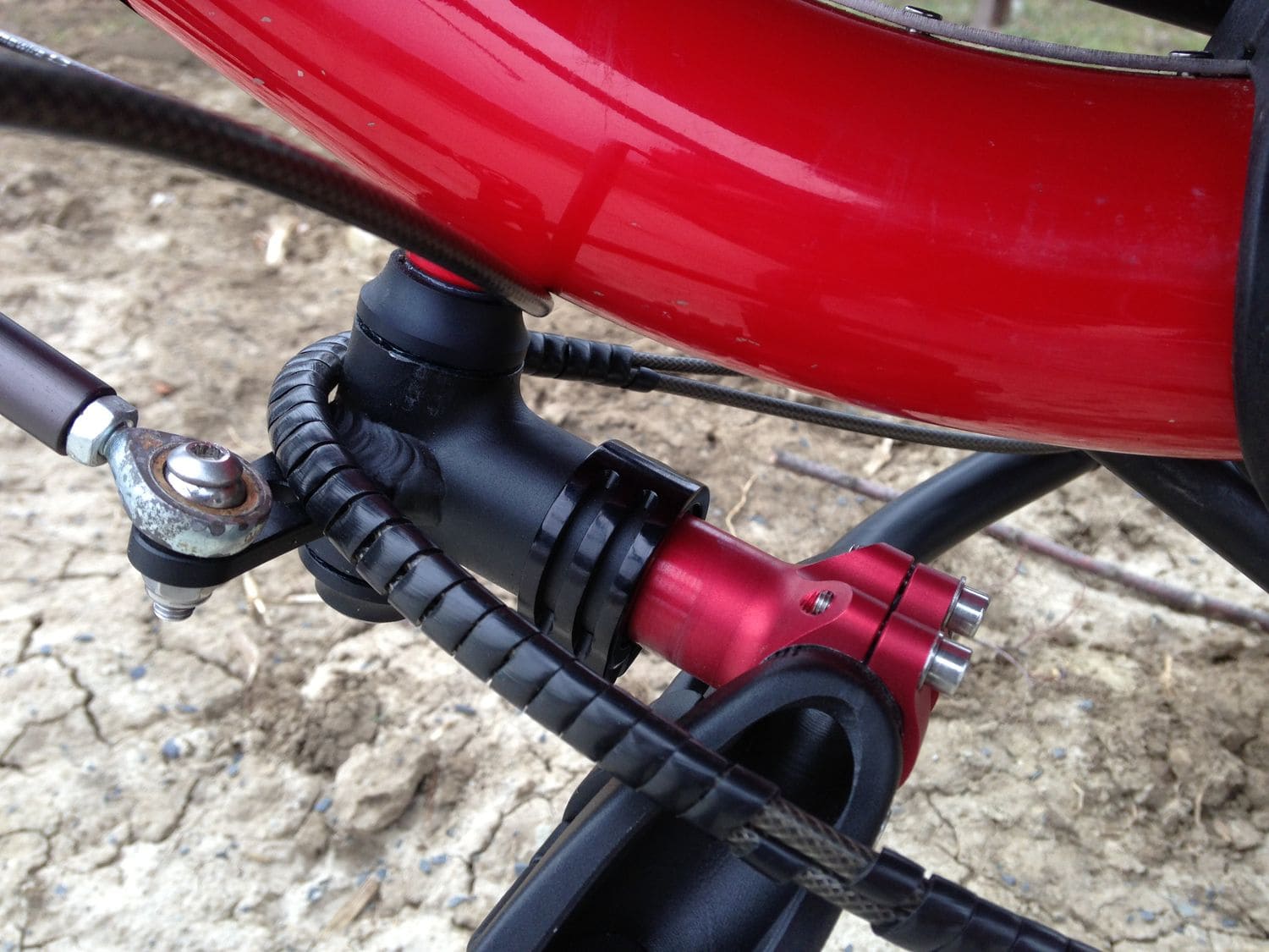 The second biggest change is on the under seat steering. We have redesigned it completely and just one version will exist for the Top Line models as same as for the Mainstream Line bikes. There are two beautiful completely CNC machined parts and the over all weight is lower than was before. Also the position of the USS axle is placed frontward compared to the previous models so the ergonomy is improved and also the steering response is a bit improved thanks to shorter steering rod. All the USS will be black (the red stem is just a prototype).