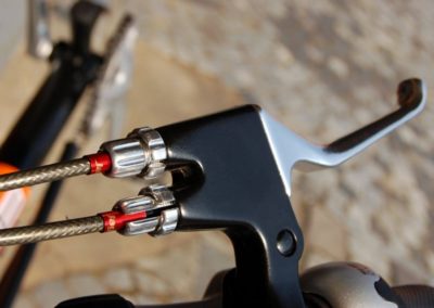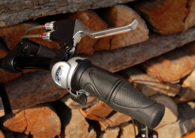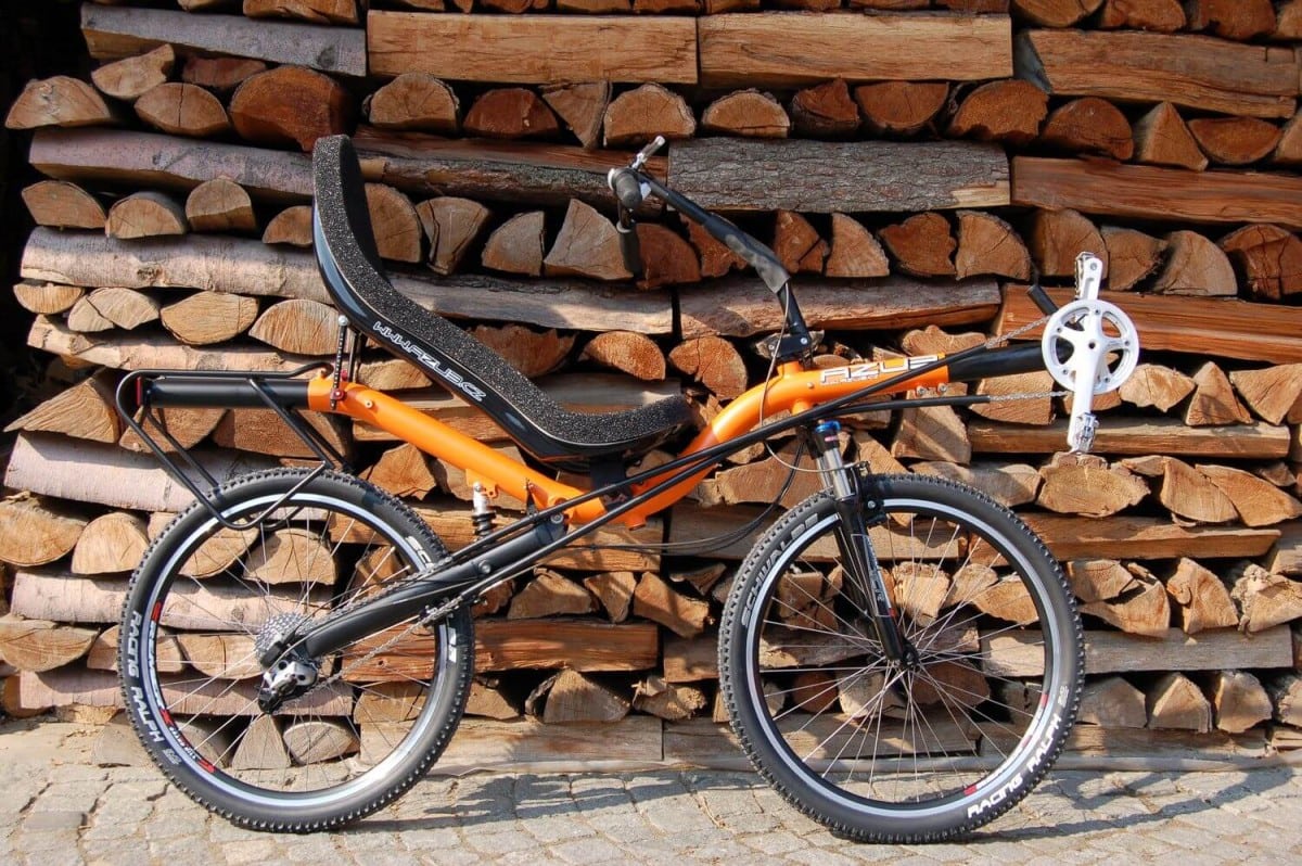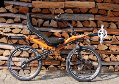 At first sight this is not a special bike. Maybe the combination of AZUB Ibex and above seat steering is not so common, but in last months this specification is quite normal too and people like it more and more. The interesting thing is that the recumbent is controled by right hand only. The SRAM Dual Drive has a combined shifter on right side as a standard but the brakes have to be operated by special brake lever which can be seen on the picture. We have solutions also for hydraulic disc brakes, left hand control only, classic gears etc. Just contact us and we will find solution for you.