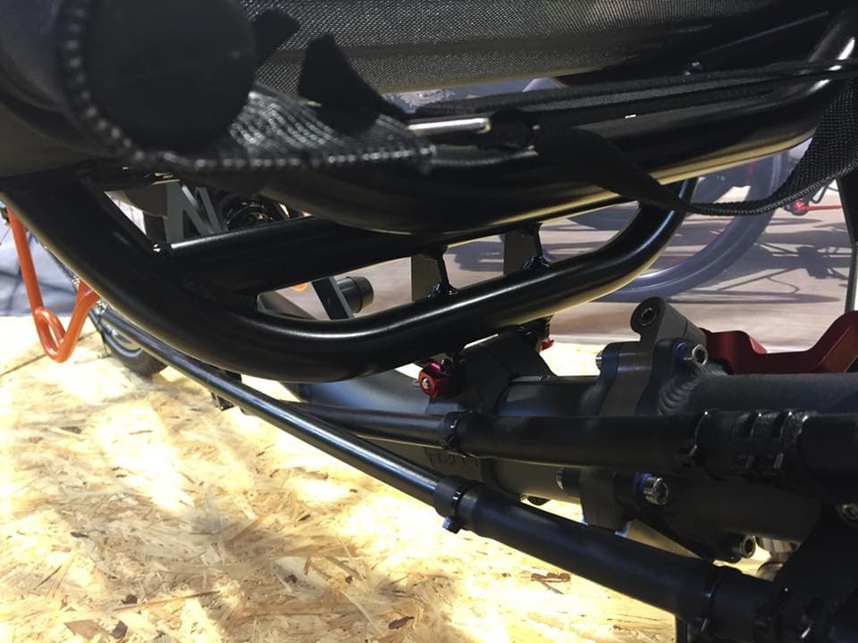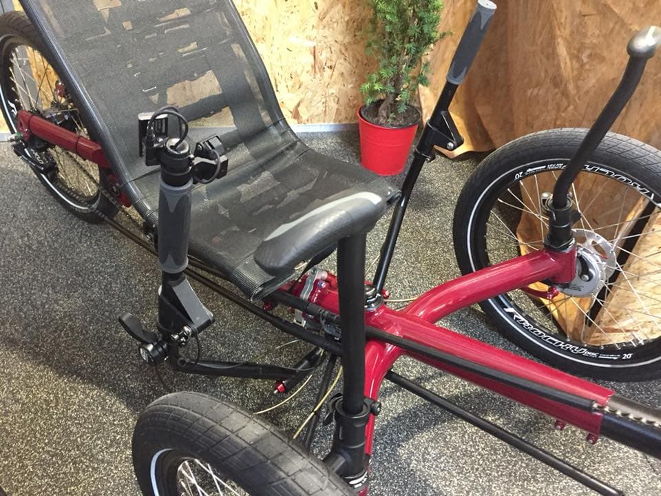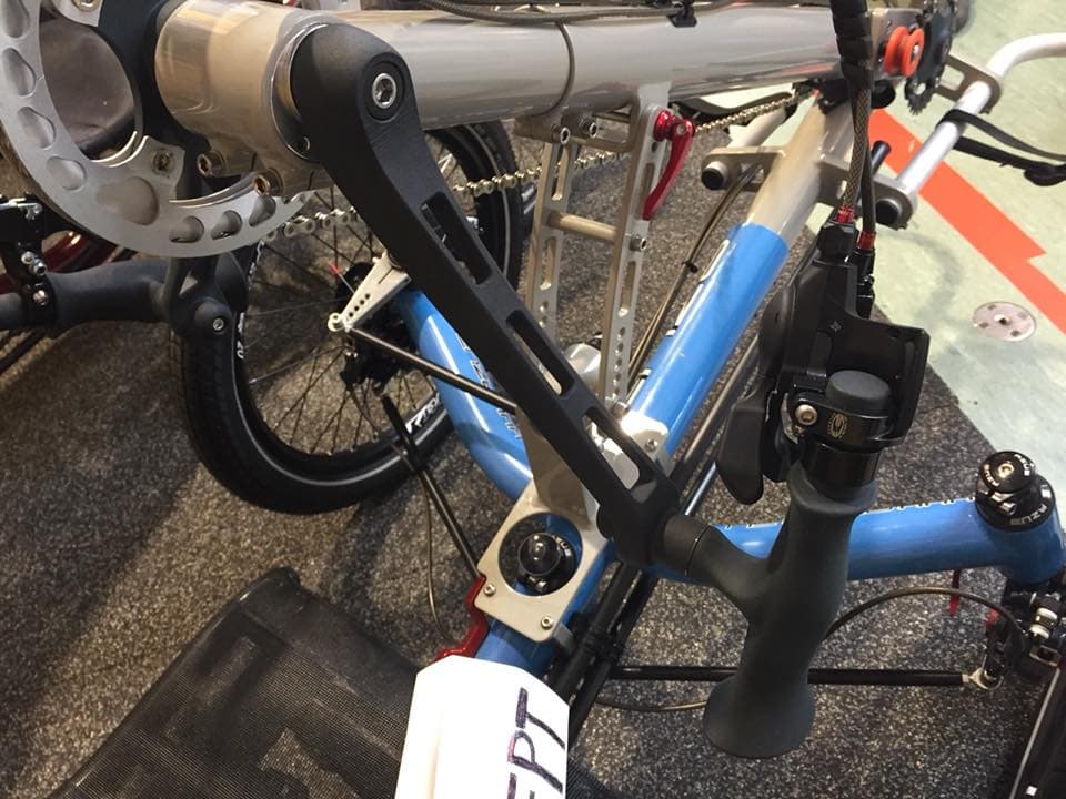 Ke shlédnutí byl také kit pro konverzi naší tříkolky na handbike, který je právě ve vývoji. Měl by být kompatibilní se všemi typy našich tříkolek a osoba s pohybovým omezením má velkou šanci nalézt ideální základ pro přestavbu. Ať už to bude menší T-Tris 20 nebo terénní Ti-FLY X.
