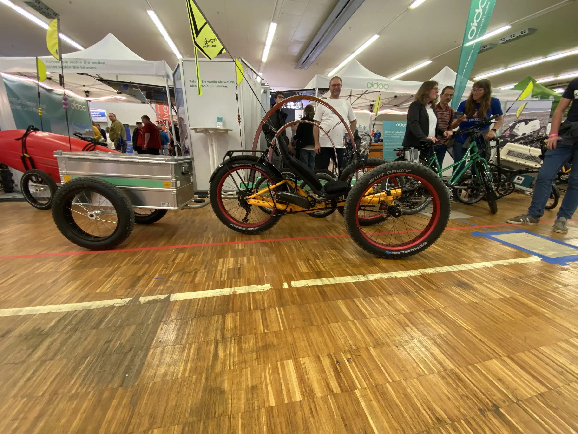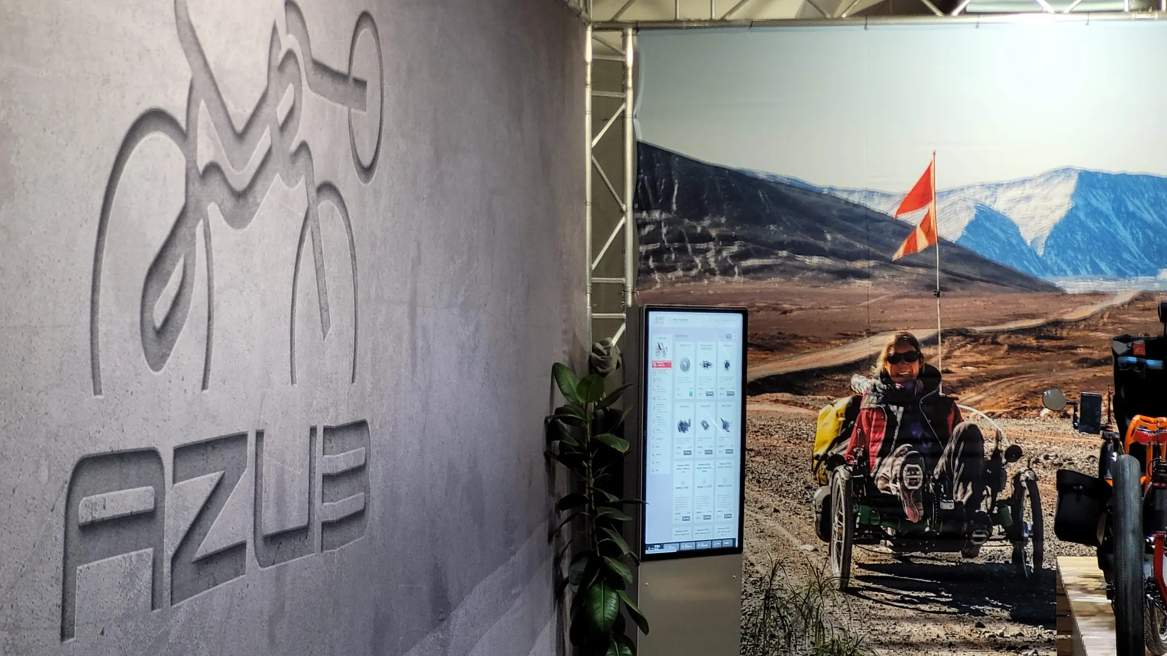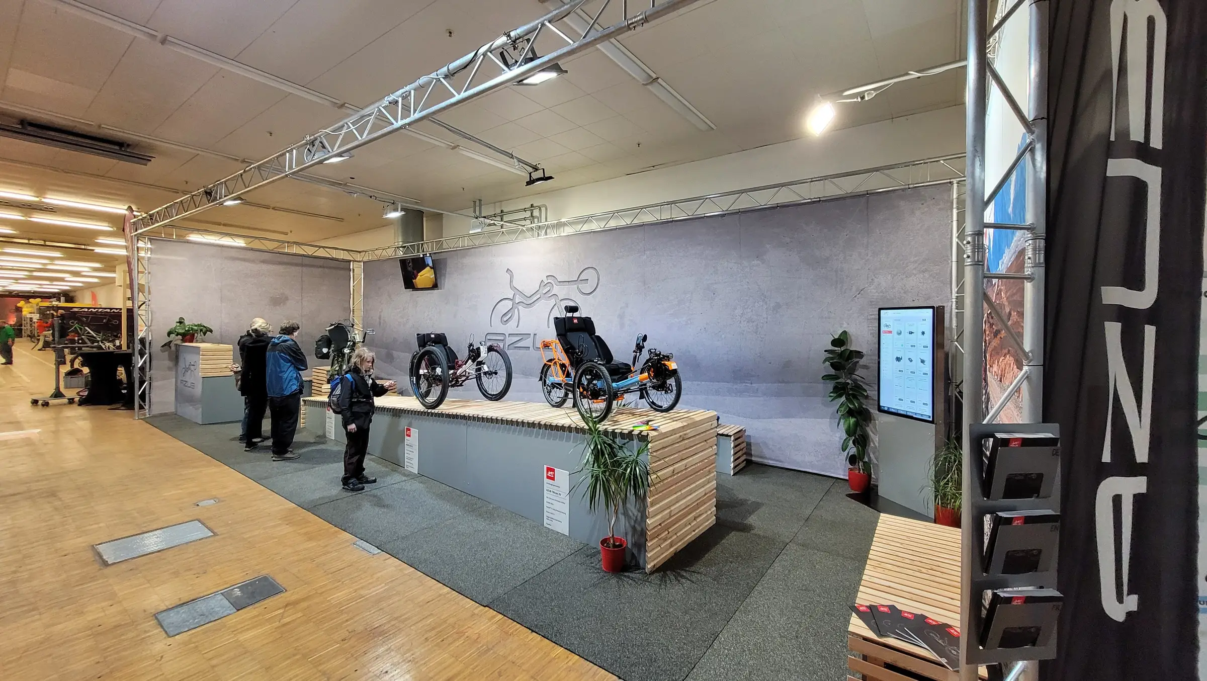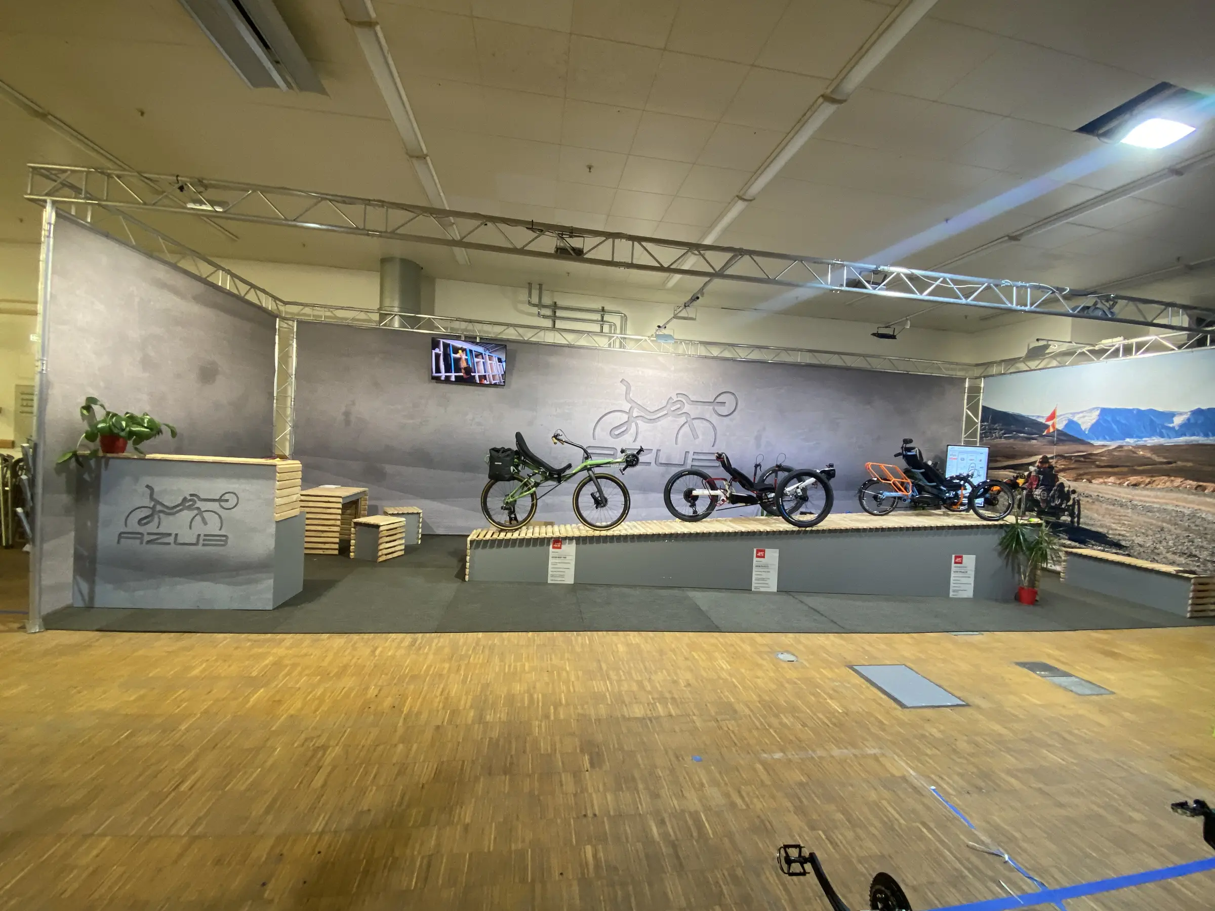My jsme si pro návštěvníky připravili zbrusu nový výstavní stánek, na kterém jsme vystavili jen tři kola. Rozumíte správně. Pouze tři. Zato však špičková. AZUB MAX 700 v gravelové úpravě se speciální karbonovou přední odpruženou vidlicí s dílny islandského výrobce Lauf, kterou jsme doplnili o bezdrátové řazení 2×11 od SRAMu. Stejné řazení jste našli i na off-roadové tříkolce Ti-FLY X s motorem Brose Smag. Jako třetí se pak na pódiu vyjímal AZUB TRIcon 20 s motorem Shimano Steps, který byl plně vybaven a doplňků na něm bylo obrovské množství. Všechna tři kola pak byla vyvedena v našem ColorShopu, takže bylo rozhodně na co se dívat. Na testování jsme pak měli připravených dalších 15 kol a tříkolek a obdivovat se dala také tříkolka od Matta Galata, kterého znáte díky Youtube kanálu JaYoe Nation, a který je naším ambassadorem. Na stánku nám pomáhal také dobrodruh Rich Haket. Matt a Viktor Zichó pak měli na SPEZI také své cestovatelské shows.