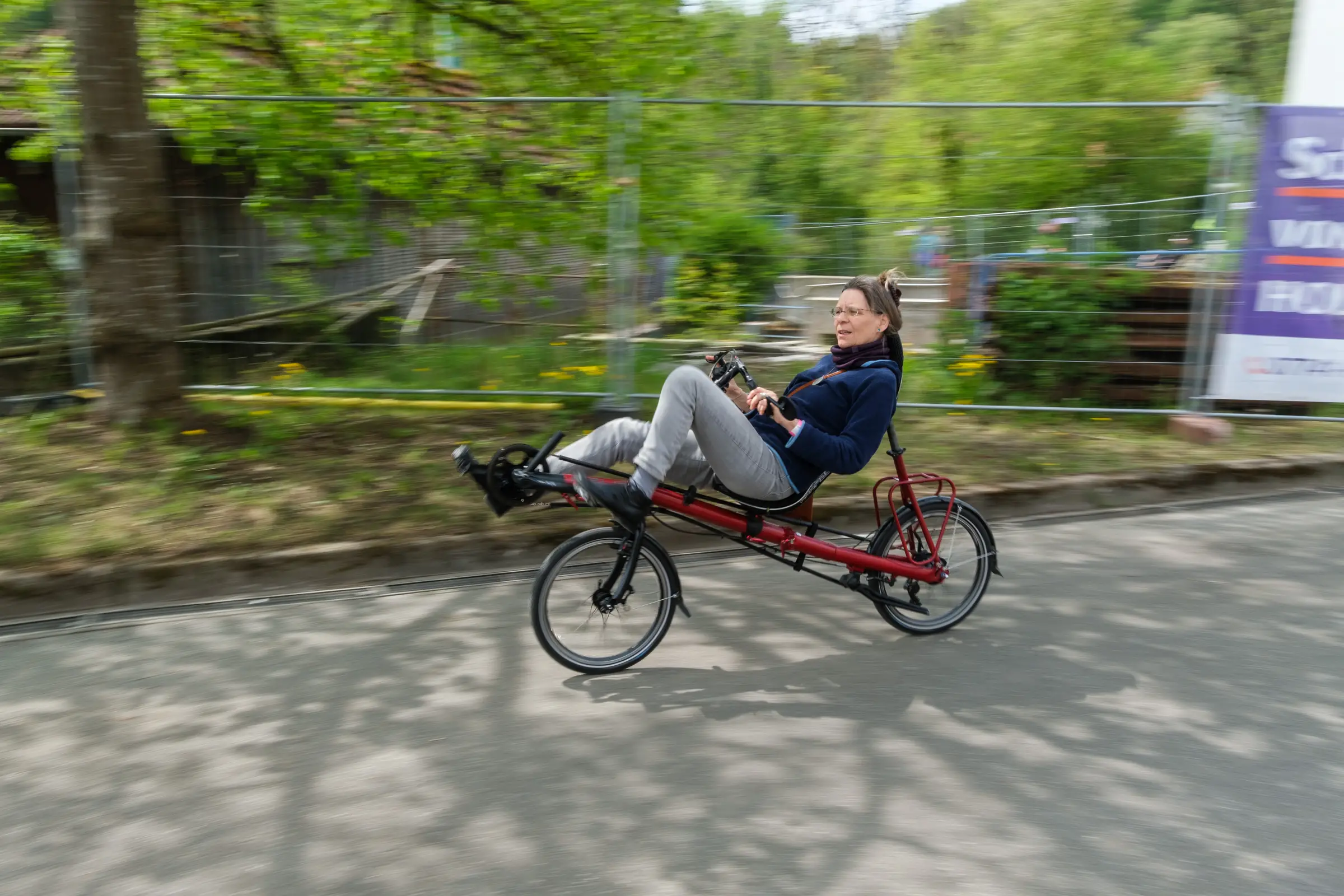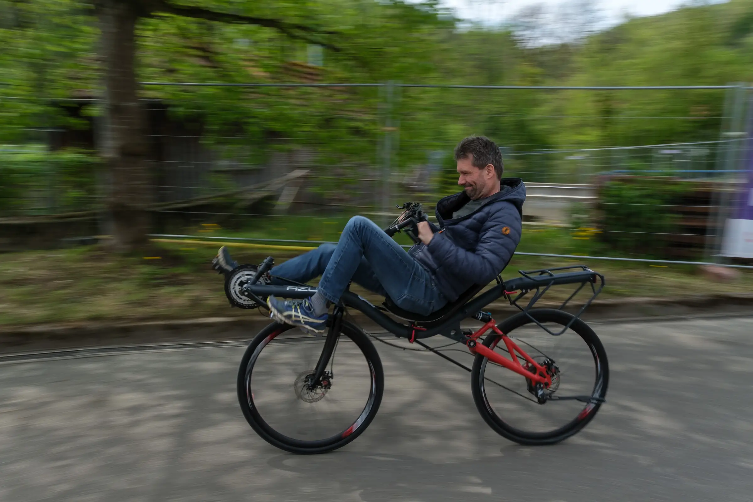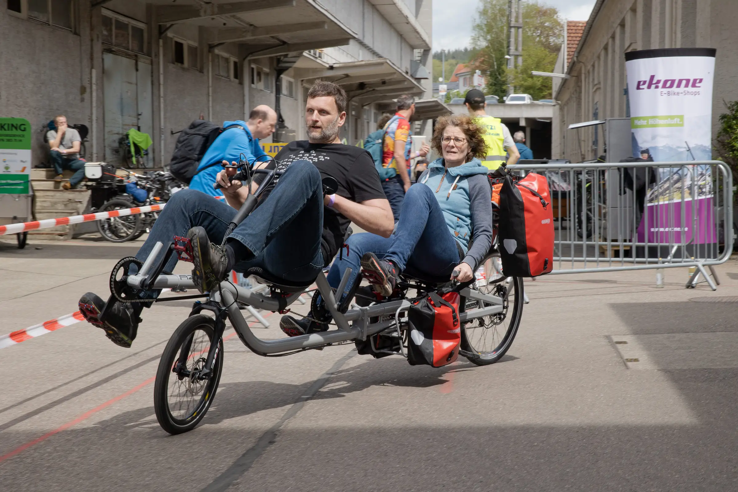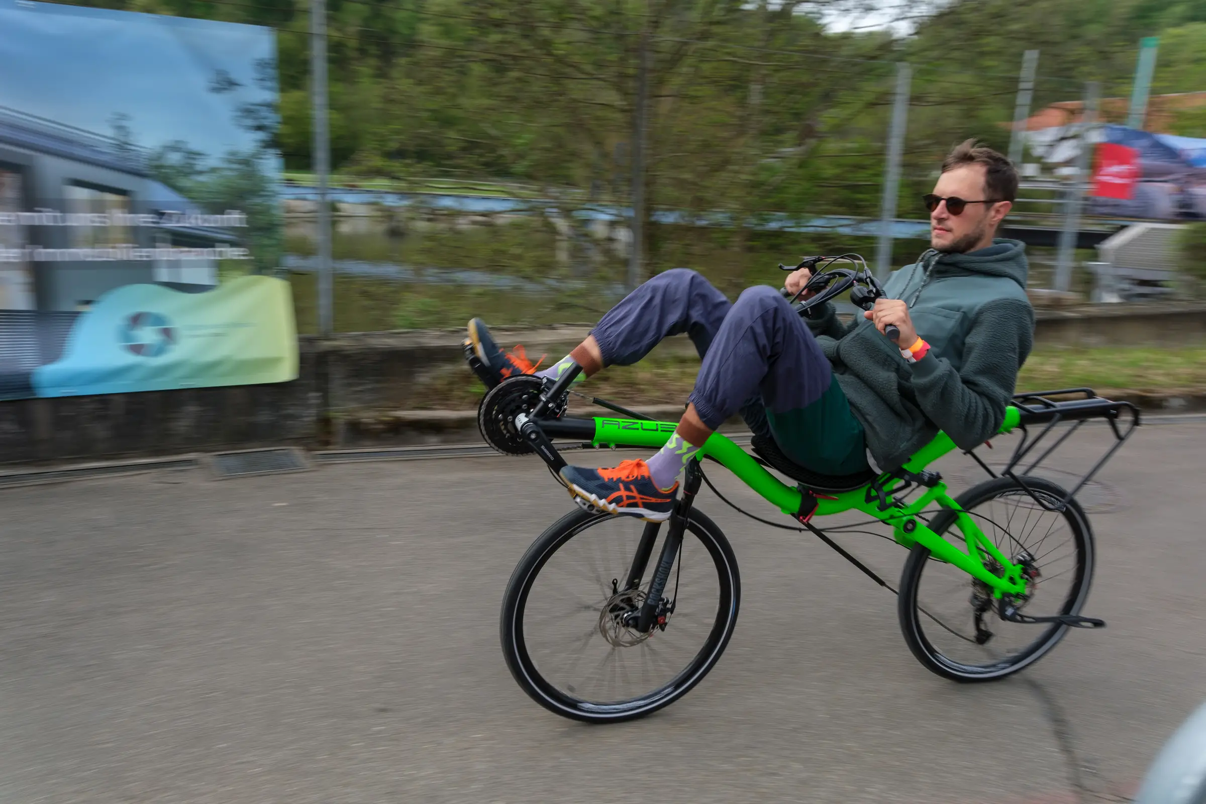 Naprosto famózní byla testovací dráha, která se proplétala mezi halami textilky, a která procházela i samotnou výstavní halou až ke stánkům jednotlivých vystavovatelů. K dispozici však byla i dlouhá verze dráhy, která vedla na nedaleký horský hřeben, a která dokázala prověřit kvality všech elektrických i neelektrických kol. Zkrátka povedená akce, kterou jsme si ještě vylepšili sobotní firemní projížďkou a také páteční a sobotně večerní party.
