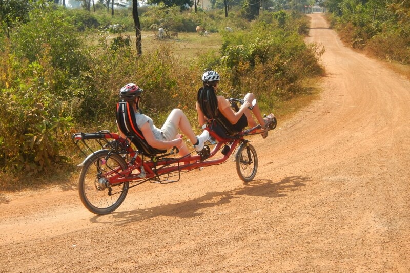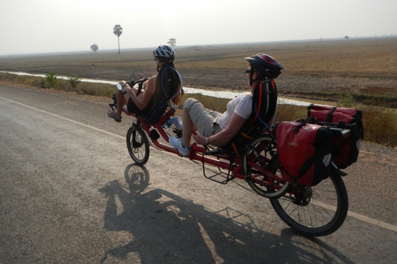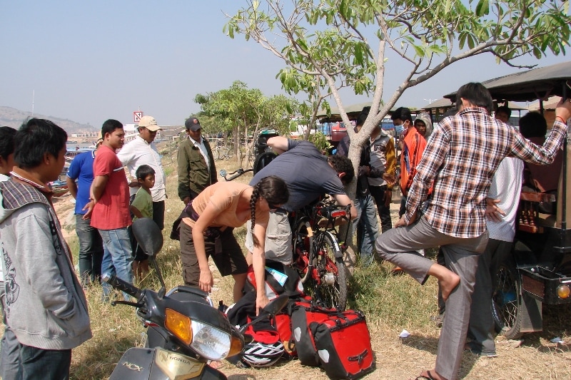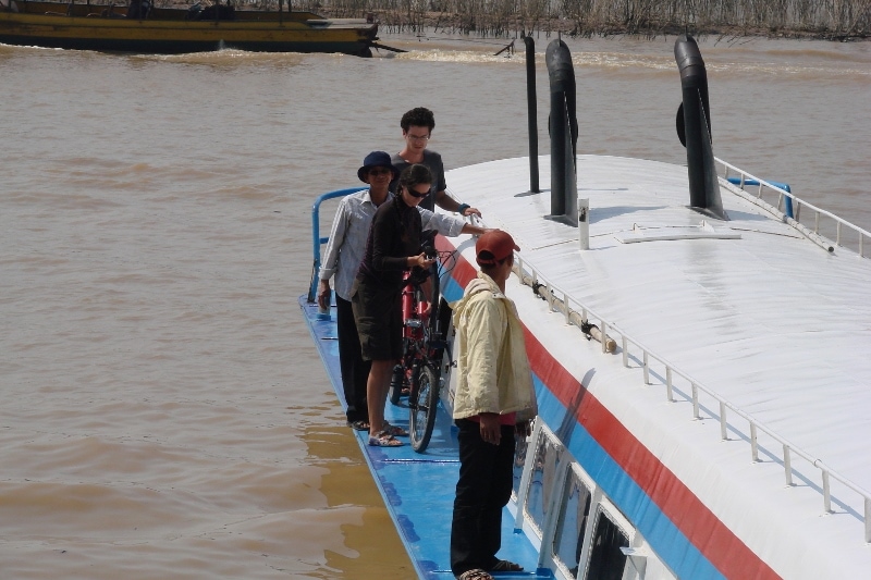 As riding out of Phnom Penh is not that nice, we left that huge strange city by boat, in the direction of Siam Reap. Boarding a 50m long boat with a tandem bike with 3 people trying to help you on a slippery deck with no barrier is almost as scary as a Russian border crossing.