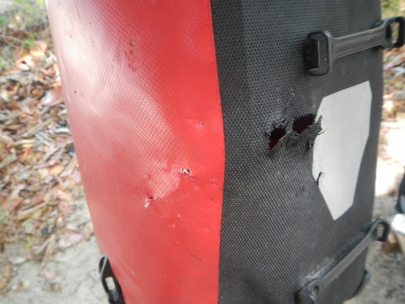 And our panniers can testify to that. We just let our food storage unattended for a few moments and WHAM! the waterproof pannier is quite a bit less waterproof… And that kind of an accident is not covered by the warranty…