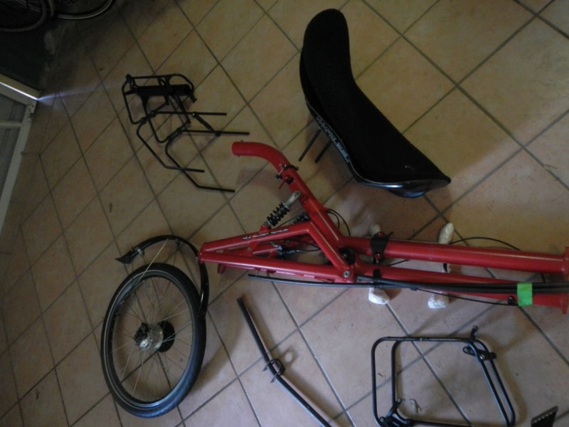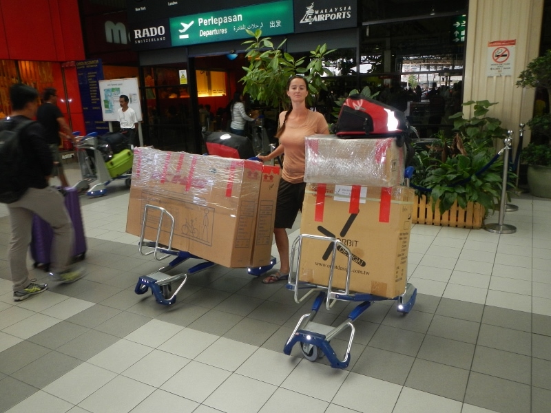 And now a bit of practical information for Twin riders. It was our first time flying with the bike. We got some regular bicycle box (27.5″ bike box is enough). Then, we did a little bit a jigsaw with our bike. We removed the seat, carriers, wheels and everything that protruded  of the frame (brakes, chain tension, mudguards).