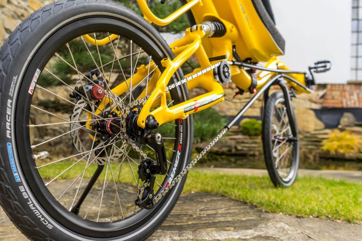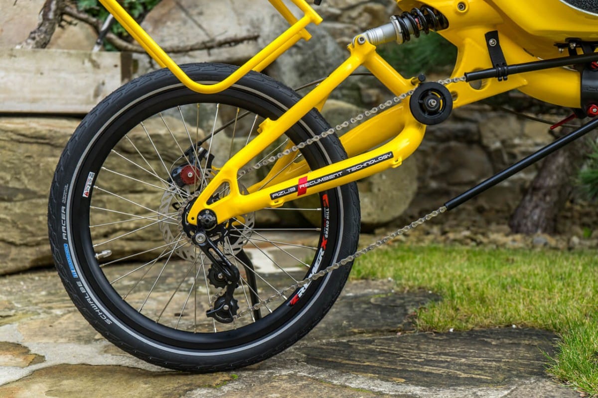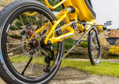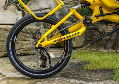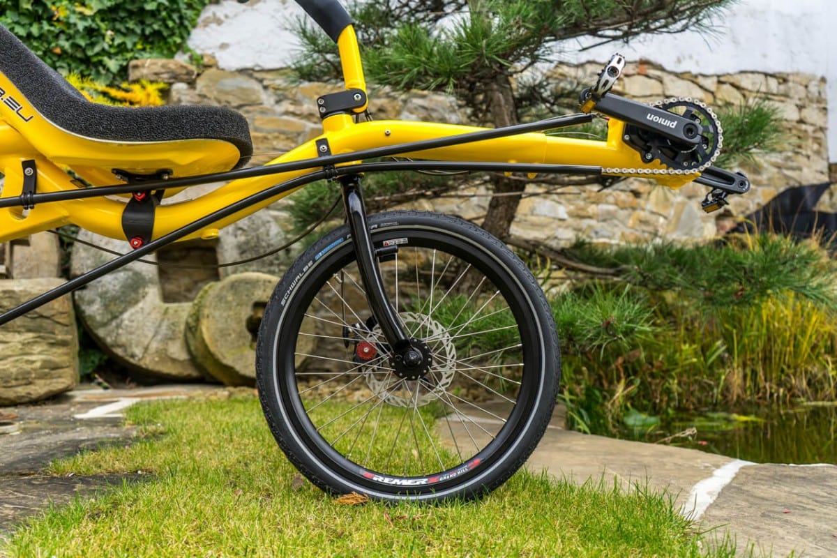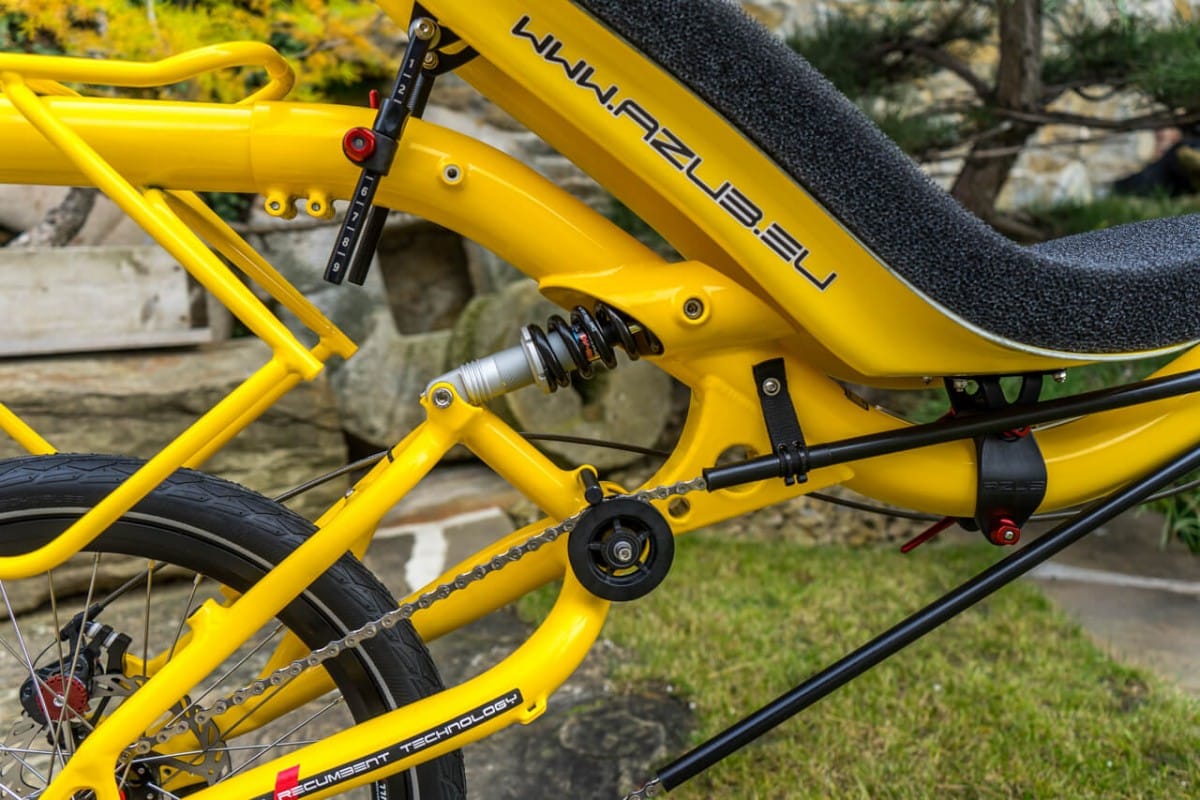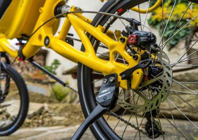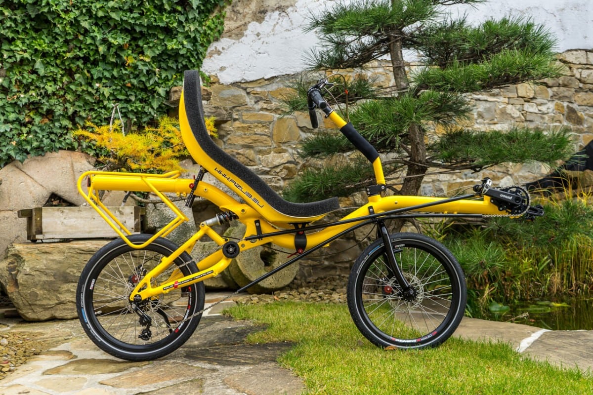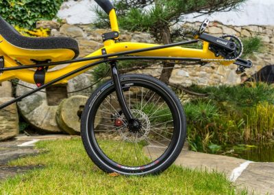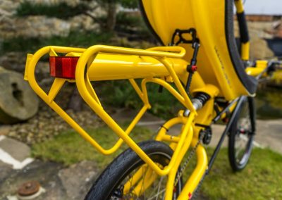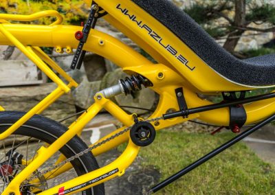 What does mean color shop? It means you could choose colour of almost every part of the bike/trike. Like this „banana“ AZUB Mini with Pinion gear hub. Not only frame but also front boom, forks, handlebars, standard carrier and composite seat could be coloured by according to your gesture. Do not hesitate and awake in yourself Picasso.