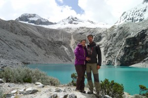 We were this time heading for the Cordillera Blanca, the highest mountain range in Peru. Reaching its foot required cycling through the Canon del Pato: a deep gorge traversed by a narrow and rough gravel road, and with many dark tunnels to cross. The 80 km of the gorge were hard work, and Angelique suffered many falls on the gravel, but once in Caraz at last we were in front of the giants: peaks higher than 6000m were waiting for us. We set of for a six day trek across the cordillera with Alvarez, our donkey driver. Unfortunately, in mid October the rainy season is already well established in the mountains and the views were often blocked. But on the last day, as we reached the top of the 4800m high Llanganuco pass, a clear sky rewarded us! We had a spectacular view on mount Huascaran, the highest summit of Peru. Exhilarated by the blue sky, we decided to make a detour to the Laguna 69: the blue turquoise lake at the foot of glaciers is one of the best hikes we made in South America.