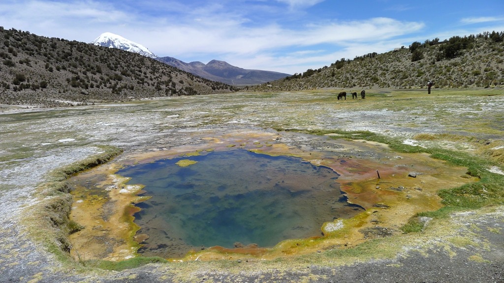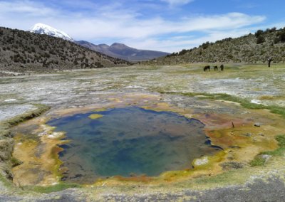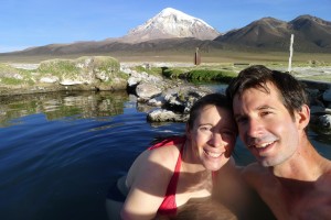 After one month and a half in Peru, Bolivia was waiting for us. La Paz is only a few cycling days away from Lake Titicaca and we were once again welcomed at a casa de ciclistas, this one being run by Cristian. La Paz is an amazing city, built on the walls of a canyon splitting the altiplano in two, and surrounded by mountain peaks above 6000m. It is modern and ancient at the same time: business women walk past mamitas in traditional dress, and in the market you still find lama fetuses used as gifts to the Pachamama. After a few days exploring its avenues and dark alleys, we decided to take the bus for a side trip to Sajama National Park: close to the Chilean border, the park includes many volcanoes, amongst which the highest summit in Bolivia: Sajama (6542m). We did a few incredible hikes amongst geysers, lakes and volcanoes capped with ice, and treated ourselves with a bath in the hot springs at sunset: wonderful!