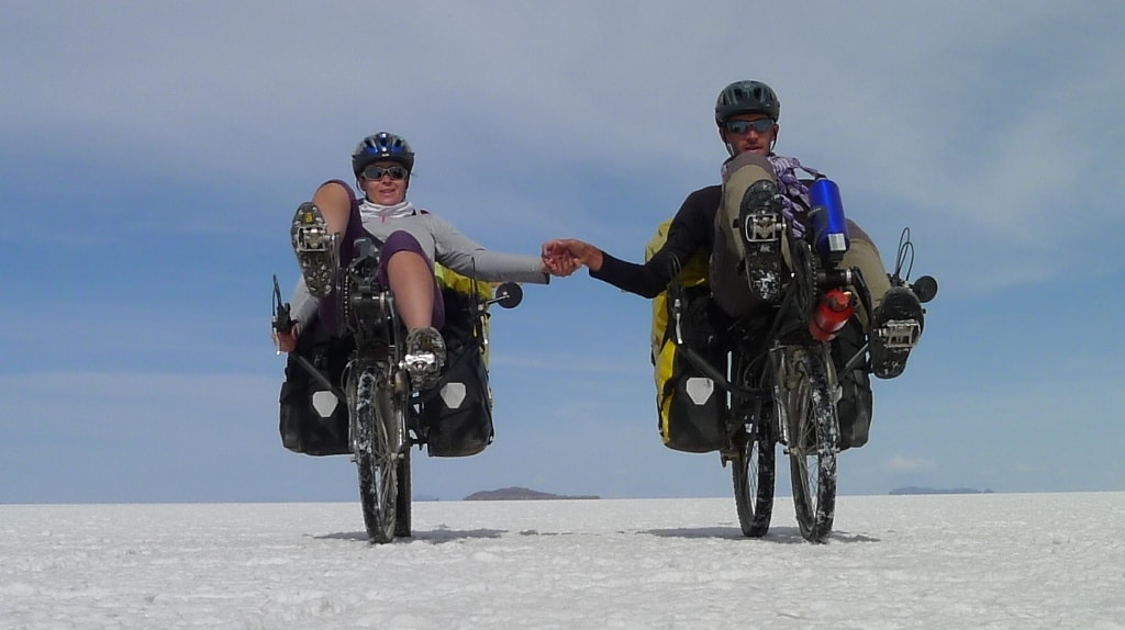 It’s a sunny day in Tumbaco on this early September day when we leave Santiago and his family. We landed a few days earlier in Quito, capital of Ecuator, and spent a few days in Santiago’s casa de ciclistas to get ready for the start of our big adventure. We’d been looking forward to that day for a year and a half now, researching the Internet and getting all the equipment needed, and we were excited and eager to set our feet on the pedals. Ahead of us lied the vast expanses of the Andes which we planned to cross until the southermost city in the world: Ushuaia. This would take us 6 months. The second stage of our trip would then take us in early march 2013 to Turkey, for another 8 months cycling across Central Asia. Our only companions would be two Azub 5 recumbent bicycles, which we chose for their extra comfort and robustness.