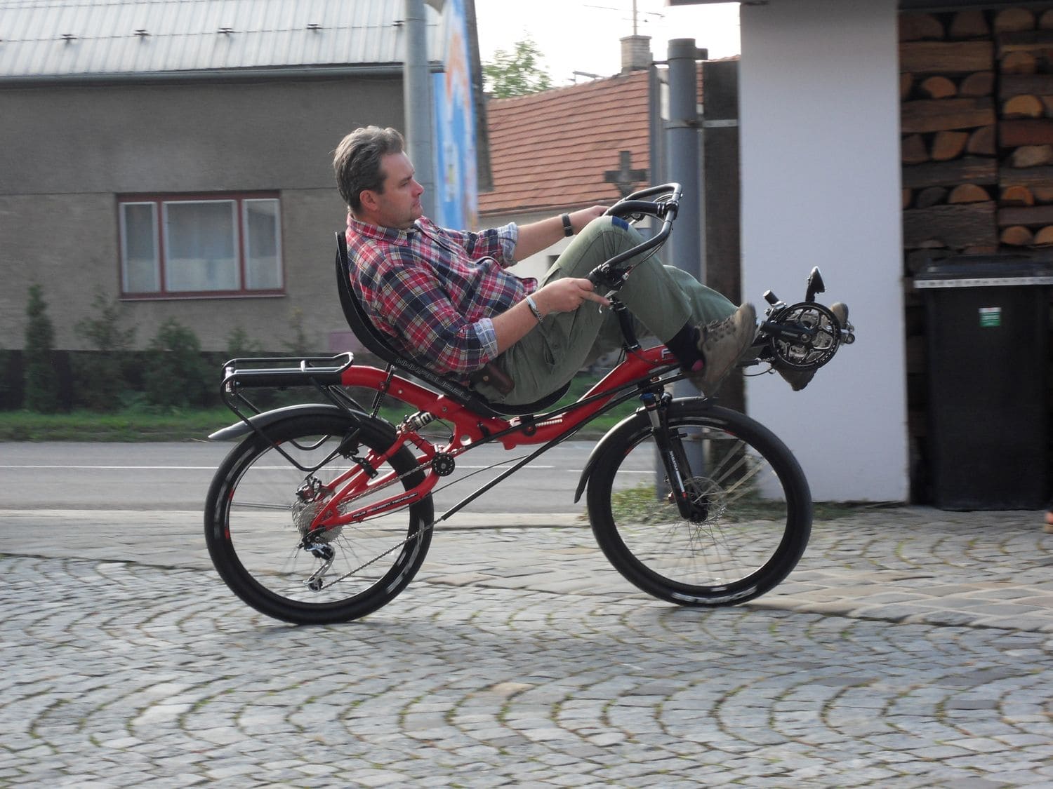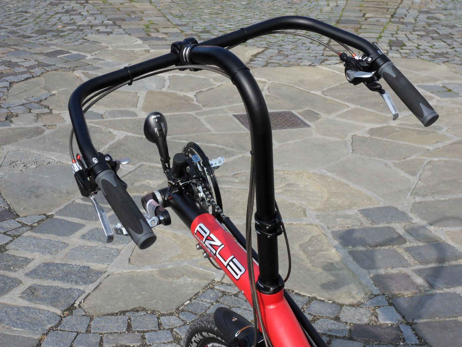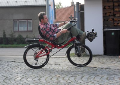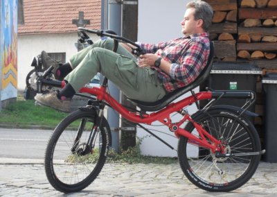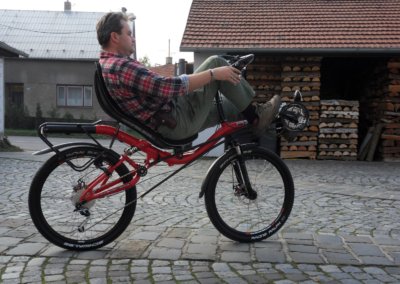 We have introduced the open cocpit (OC) steering option here on the blog just about three monthes ago or so and we have built couple of them until now. Here you can see a pretty special bike. It is an AZUB MAX with 26″ wheels and Schwalbe Racing Ralph MTB tyres and the open cocpit. We were all very interested in how such bike will ride and it was a big pleasure.
