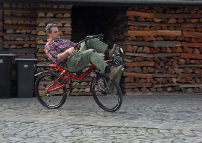 BTW: The man who is riding the bike is Miro Ozimý. Our mechanic from Slovakia who is a master in assembling all the different custom solutions and full bikes. A real genius when it comes to the AZUB TWIN or Rohloff assembly.