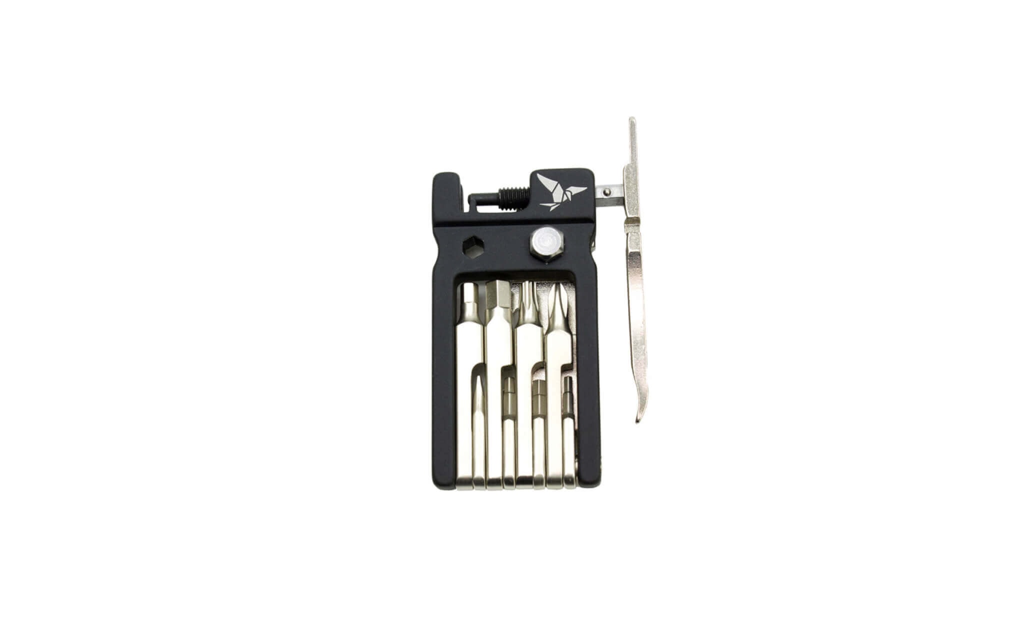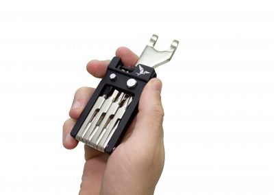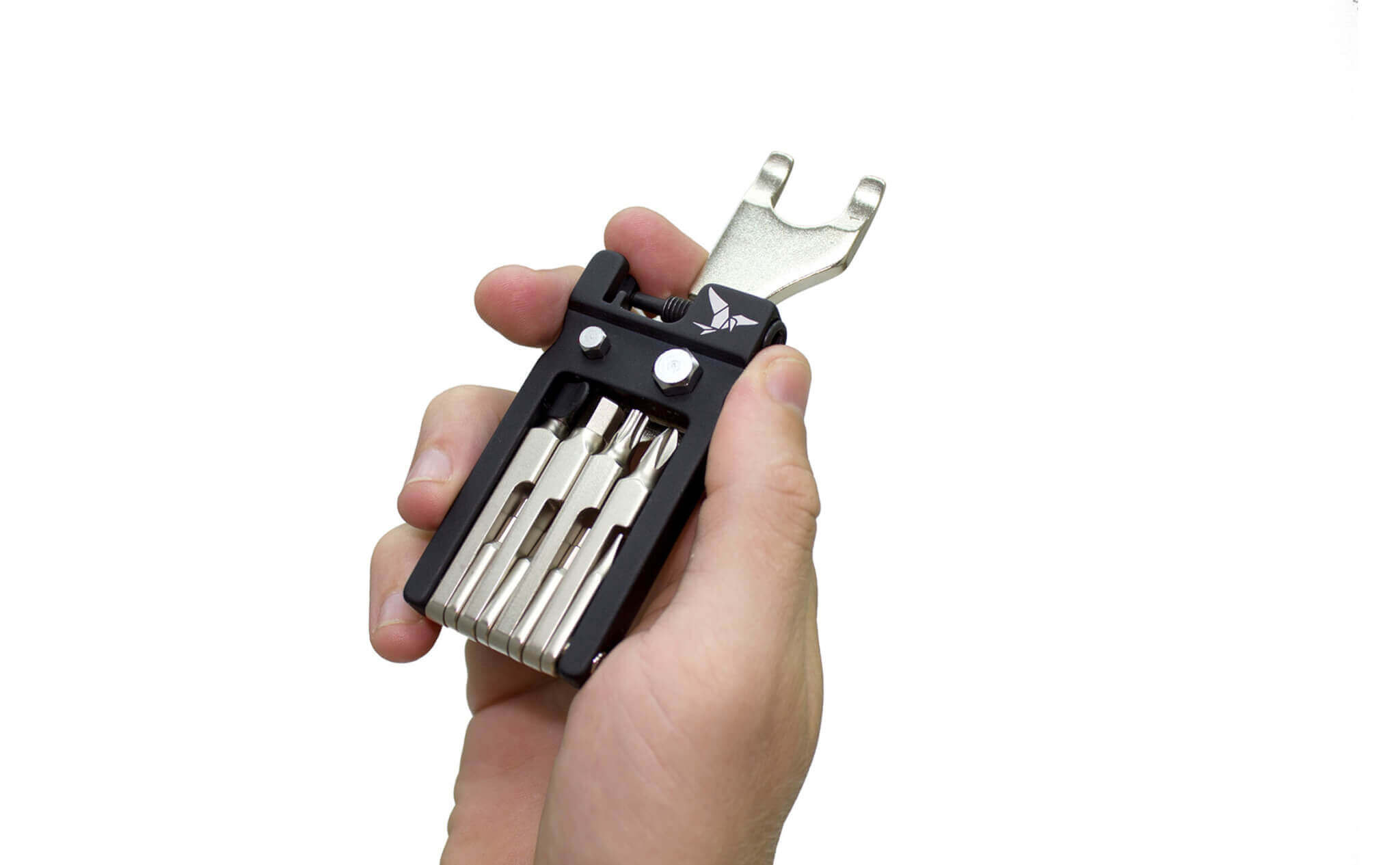 Pohotovostní nářadí, jehož hlavní předností je především nízká hmotnost a všechny potřebné klíče na jednom místě. A to včetně 15mm, který se používá pro utažení pedálů a os kol do vidlice. To platí nejen pro některé základní modely bez rychloupínáku, ale také pro modely s nábojovou převodovkou. Nářadí obsahuje také montpáky a nýtovač řetězu.