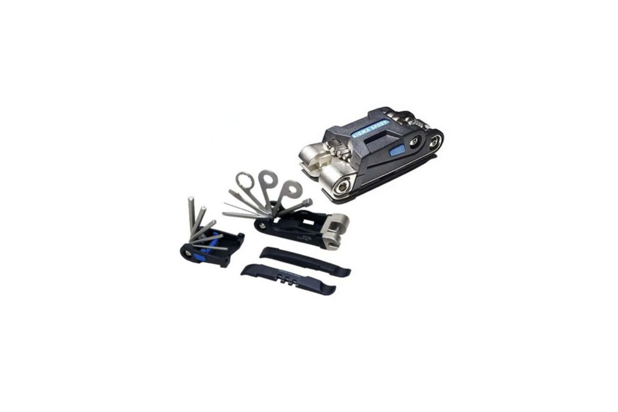 Multifunkční sada nářadí na cestu SKS Toolbox Travel s 18 funkcemi ideální pro náročné cestovatele nebo maratonské závodníky. Set z kvalitní chrom-vanadiové oceli obsahuje 7 imbusových klíčů, křížový a plochý šroubovák, dva centrklíče a dva 6hranné klíče. K tomu nýtovač řetězu pro HG/IG 8/9 rychlostní řetězy i 10rychlostní Campagnolo.