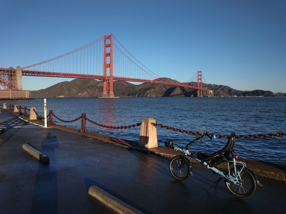 Z Chicaga cestoval Robert se svým Origami do San Francisca. Absolutním vrcholem této zastávky byl pro Roberta přejezd slavného mostu Golden Gate Bridge. Při prvním ranním výletu k mostu se Robert dostal jen k jeho základně, na přejezd už před prací nezbyl čas. Motivovaný krásou této dominanty San Francisca, vydal se Robert k mostu večer po pracovním dni. Večerní přejezd slavného mostu za tmy popisuje Robert ve svém blogu jako neopakovatelný zážitek. To musela být jízda!