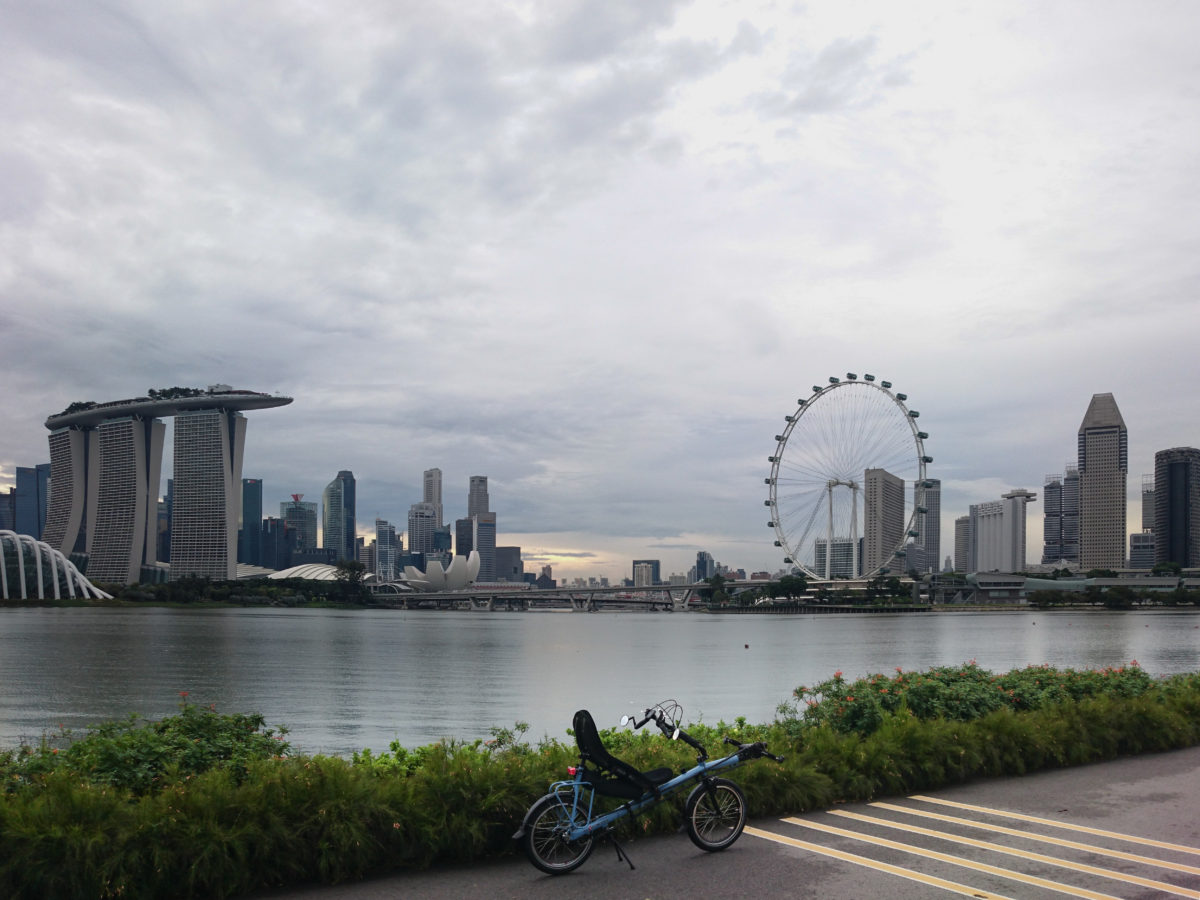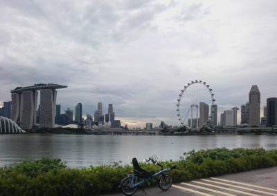Jako poslední na Robertově seznamu světových měst figuroval Singapur. V okolí zátoky Marina Bay a podél pobřeží Singapurské zátoky vedou cyklostezky, a proto si Robert užil vyjížďku stoprocentně bez aut. Namísto nepříjemnému provozu musel ovšem čelit zdejší vysoké vlhkosti.
