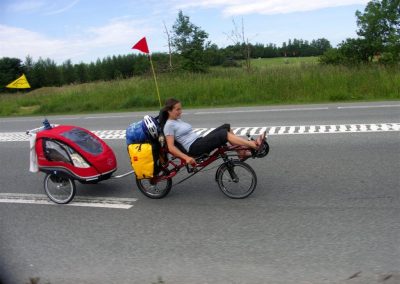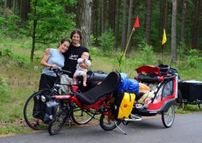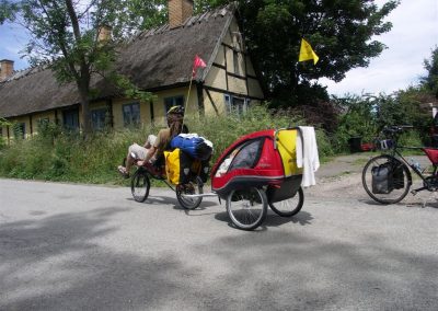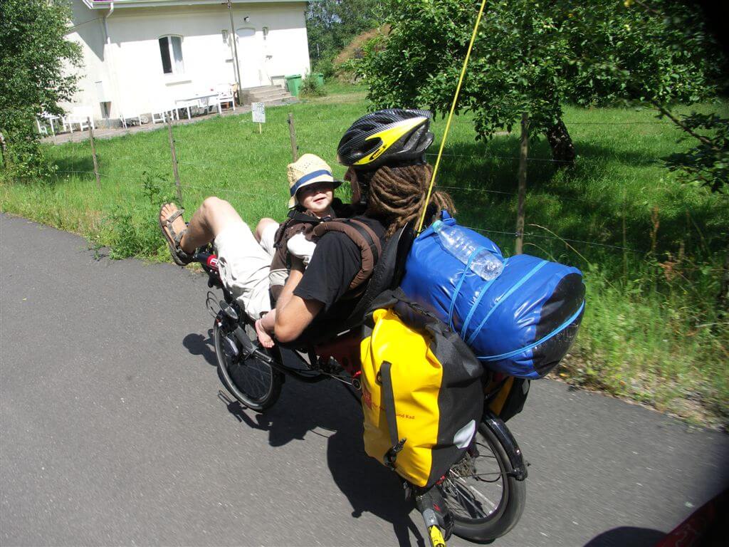 Becoming a father is great! Jon was six months old when we started our trip and it worked out quite ok. Of course this was an age when he became very active and didn’t want to be confined to the trailer all day. So we went mostly when he was sleeping and let him lead our trip. When he woke up, we stopped and made around 50 km per day like that.