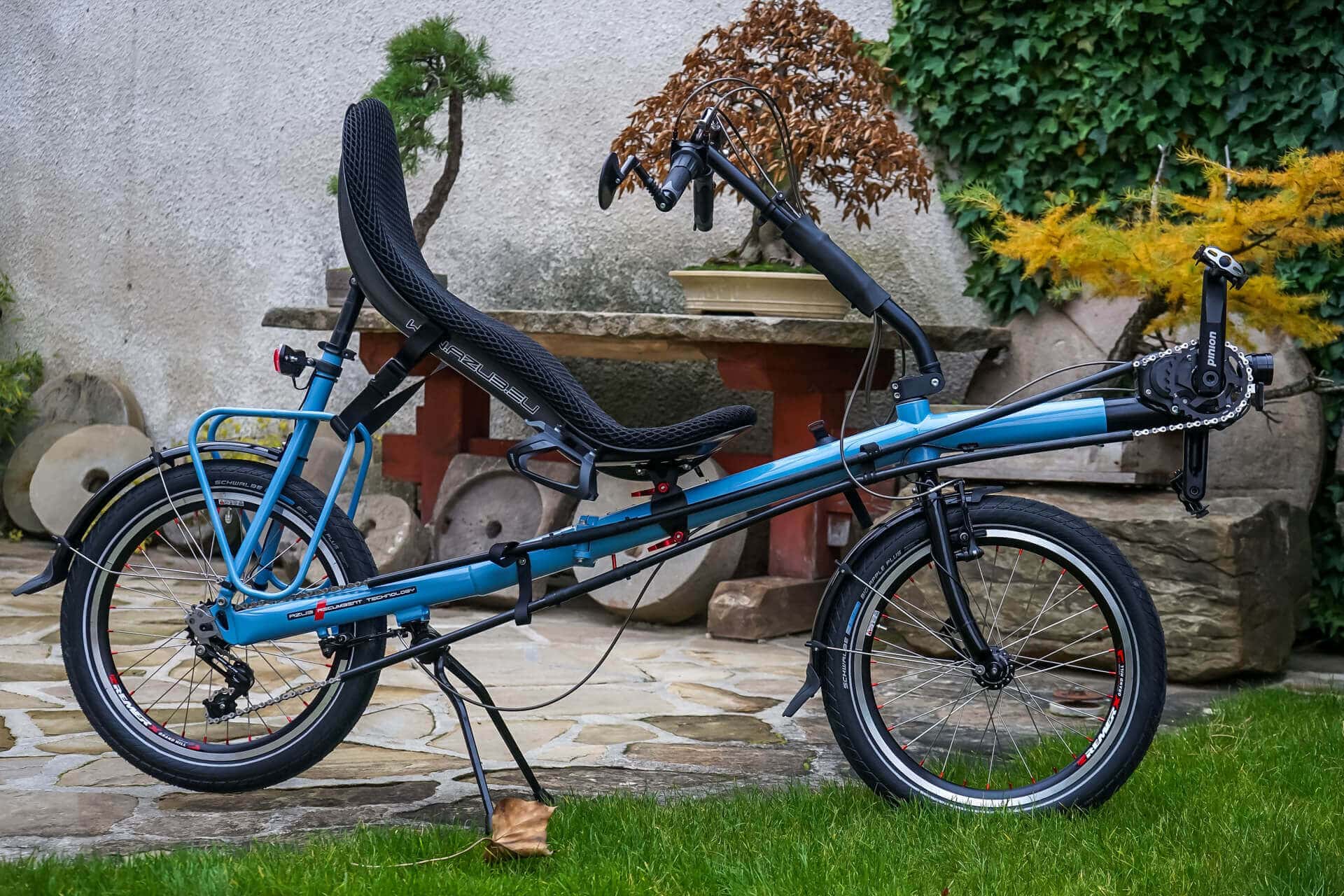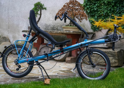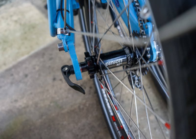 Unikátní stavba našeho skládacího lehokola AZUB Origami, které je v této verzi postaveno s 12 rychlostní převodovkou Pinion C1.12, originálním zadním nábojem Pinion, dynamem v předním náboji SON, plným osvětlením a také karbonovou sedačkou. Budoucí majitel Robert z Velké Británie od nás má už dvě další kola s Pinionem a s Origami se hned po jeho obdržení chystá na dlouhou služební cestu do USA, ale i Japonska a Koreje. Už teď se těšíme na fotky od něj.