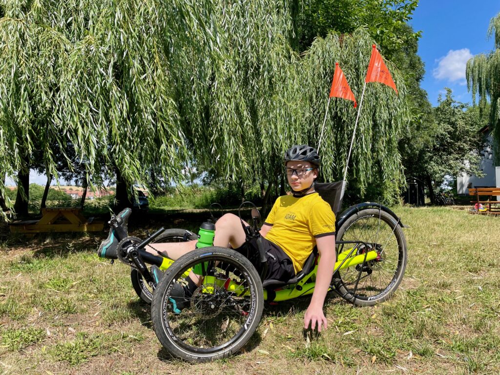 Adam byl první. První pro koho lidé kolem Martina Součka vybírali peníze, a díky kterému vlastně výzva Kolo pro Adama vznikla. Adam Kuthan z moravských Bukovan měl ve svých třech letech nádor na mozku a po úspěšné operaci si jej máma odnášela domů jako hadrovou panenku. Po dlouhých nikdy nekončících rehabilitacích se ve svých deseti letech posadil na handbike a kolo jej naprosto nadchlo. O dva roky později už potřeboval pořádný stroj a do cesty se mu připletl právě Martin Souček a jeho přátelé. Ti uspořádali dobročinou akci a prostřednictvím svých sportovních výkonů vybrali Adamovi na nového AZUBa, který je už poháněn nohama. Adam tak v roce 2020 osedlal AZUB Ti-FLY 26, což je plně odpružená tříkolka, kterou jsme vybavili hydraulickými kotoučovými brzdami a špičkovým elektronických řazením Shimano Di2, které Adamovi výrazně usnadňuje řazení. Ti-FLY je naším top-modelem a jeho unikátnost spočívá především v titanovém předním odpružení a také široké zadní vidlici s pevnou osou Syntace, která vylepšuje jízdní vlastnosti v rychle projížděných zatáčkách. A že jich má Adam za sebou už požehnaně. Vždyť v roce 2021 dokázal najezdit téměř 10.000 km a nastoupal neuvěřitelných 64.000 výškových metrů. V přepočtu tak vylezl 7x Everest a to rovnou od moře. Ano, ne všechny kilometry byly právě na tříkolce Ti-FLY, některé zvládl i doma na trenažéru, ale i tak je to úctyhodný výkon.