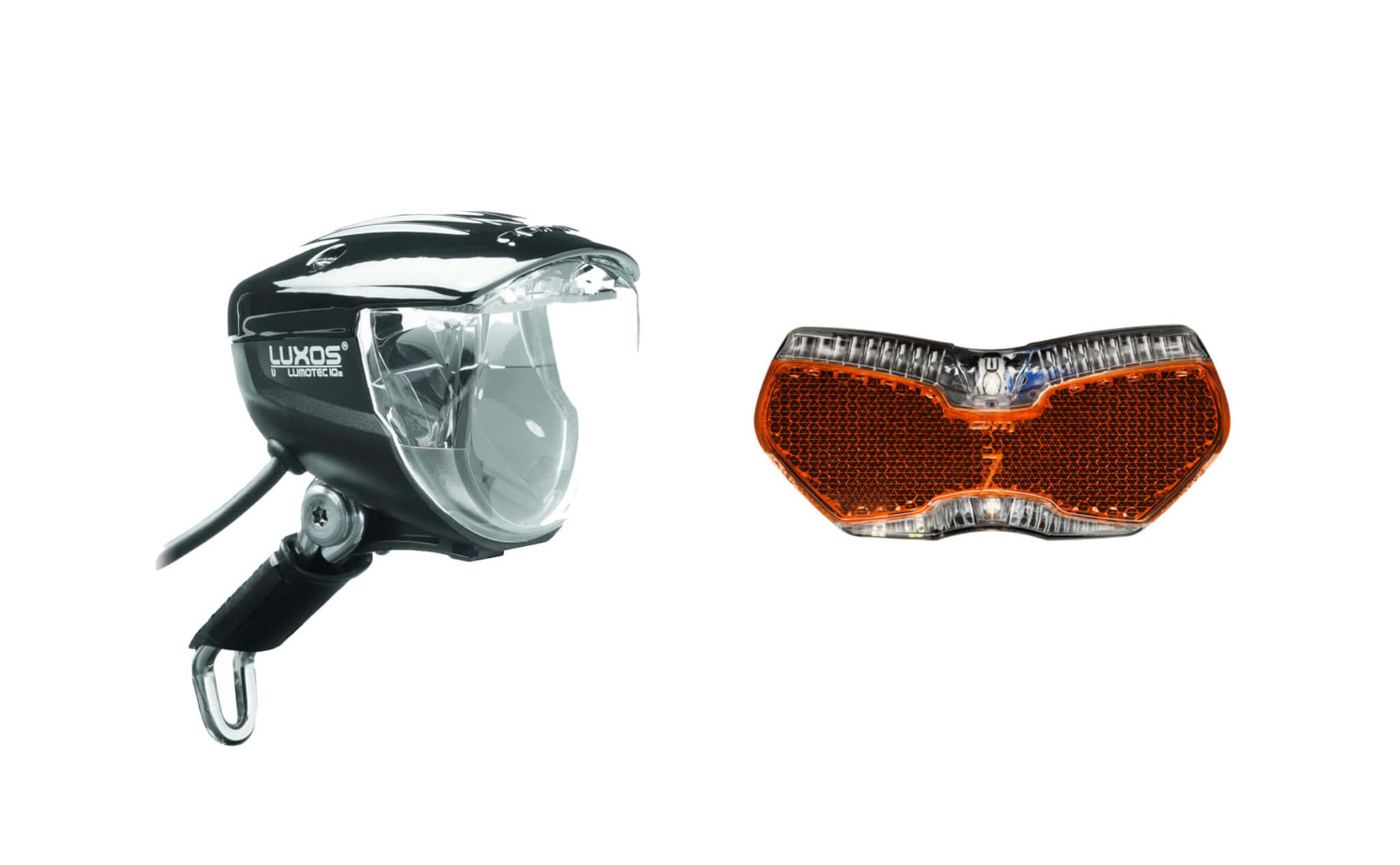 A control LED inside the headlight continually shows whether or not a connected rear light functions properly. With Clip on Front reflector.