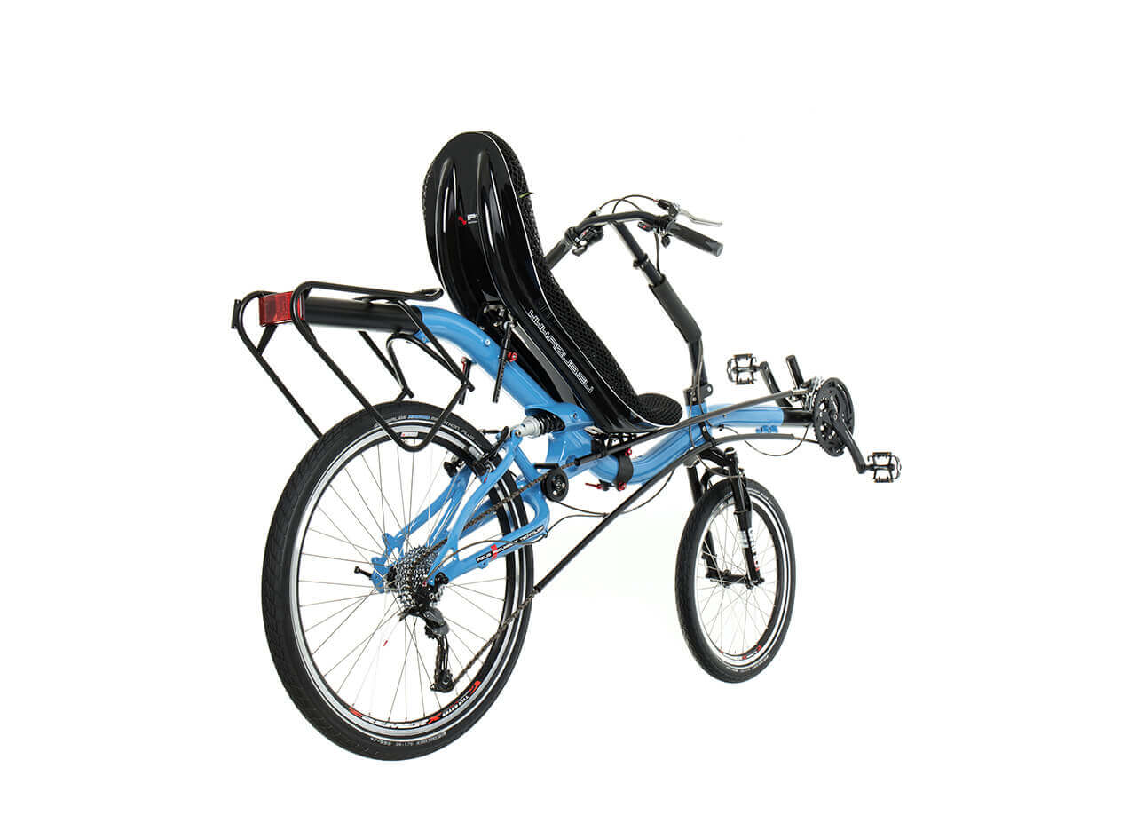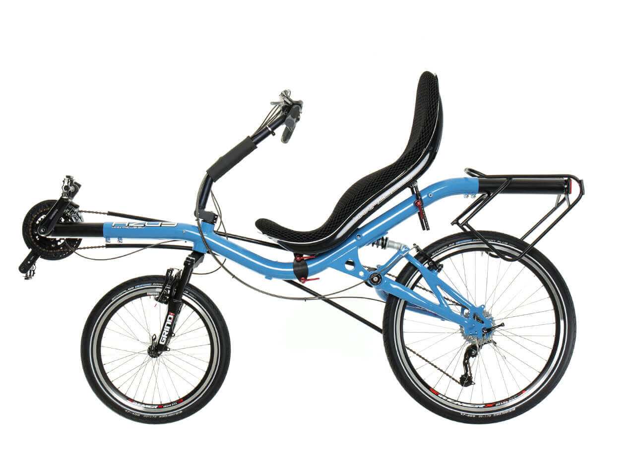 The design of our asymmetric rear fork we presented at the SPEZI 2007 astonished not only recumbent bike riders but also professionals. It is not a gadget for a mere showing off! You can experience the functionality of its original shape and of its unique fit into AZUB frames on the Mini, SIX and MAX models.