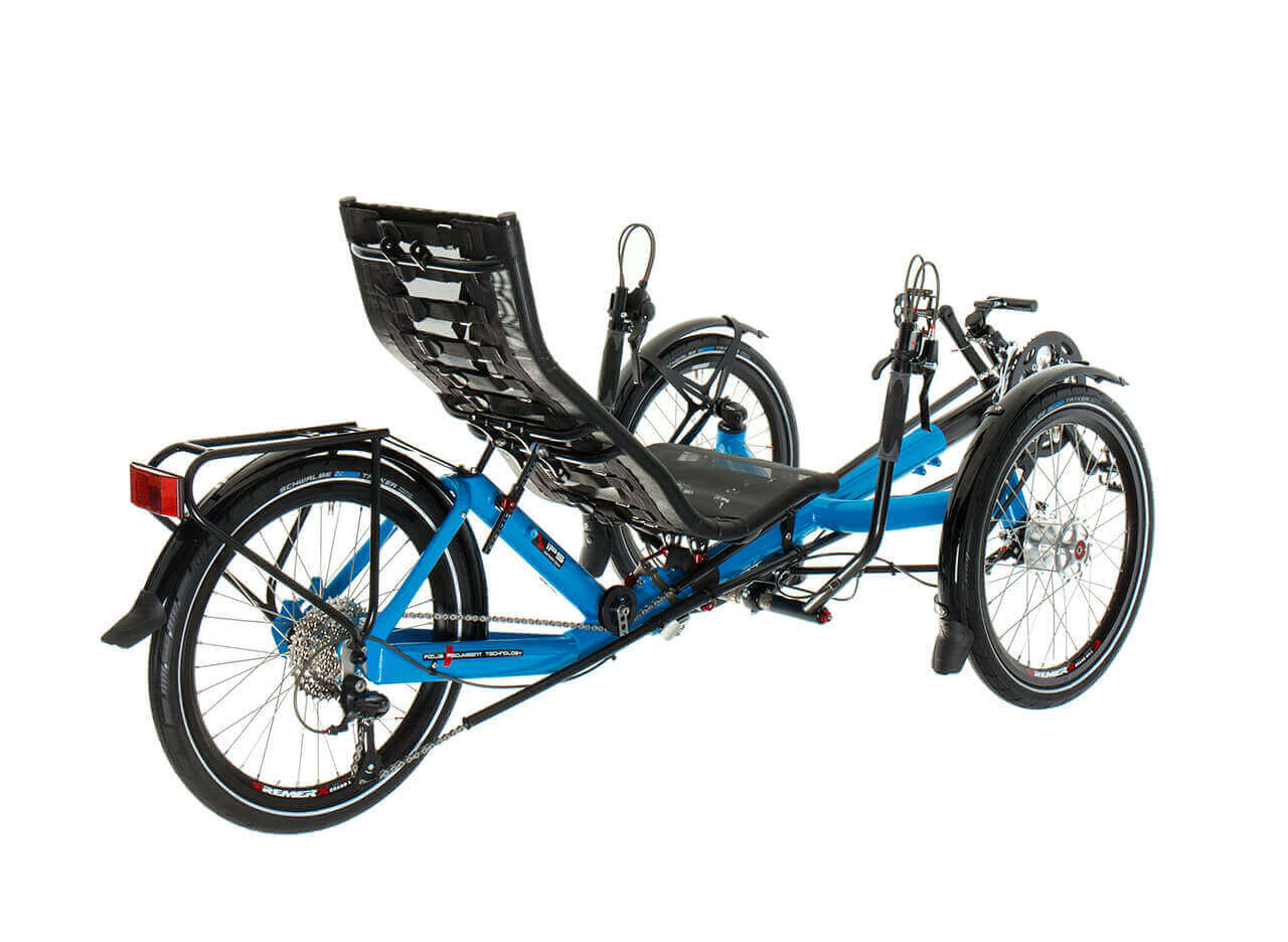 The T-Tris 20 is based on our first and very successful tricycle, the AZUB ECO trike, to which we have added a folding system and kept all its exceptional qualities, such as the top quality riding feel, stability, adjustability and compact size. And it is the small dimensions that make the T-Tris a nifty little vehicle with a small turning circle, which when folded can be easily transported in a car or stashed away in your garage. The T-Tris 20 is also popular with customers thanks to its ergonomic comfortable mesh seat that greatly contributes to a comfortable ride, even though the tricycle has no active suspension. If you would like to increase your comfort further, you can opt for the Schwalbe Big Apple balloon tyres that perfectly absorb the minor vibrations coming from the road. The stiff frame without suspension enables the rider to have excellent power transmission and the 20” wheels provide superb acceleration and easier ascent.
