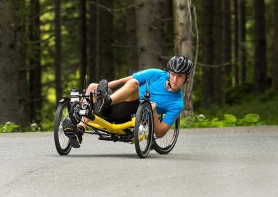 Ever since we started back in 2000, we have always thought that a bike should adapt to the rider and not the other way round. That’s why we used an adjustable seat for our first bike, in which both the angle and the pedal distance were adjustable. With each further development stage, we introduced a more accurate adjustment, until 2013, when we reached a stage of adjusting without positions. This concept is based on a sliding sleeve, which we produce in a straight version for our tricycles and some bicycles, as well as in a curved version for recumbents.