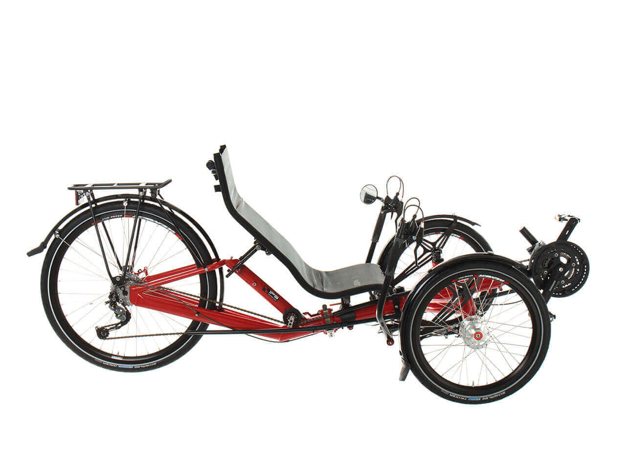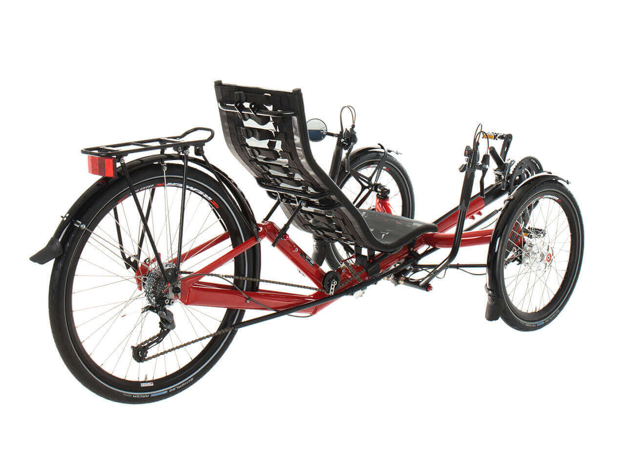 A 26” rear wheel copes better with going through or over bumps so it is therefore a little bit more comfortable. Also, some people prefer the overall look and today, the 26” rear wheel concept is simply trendy. On the T-tris 26, we also managed to create a very stiff rear with minimum flex which provides exceptional riding properties, a highly valued feature in all AZUB tricycles.
