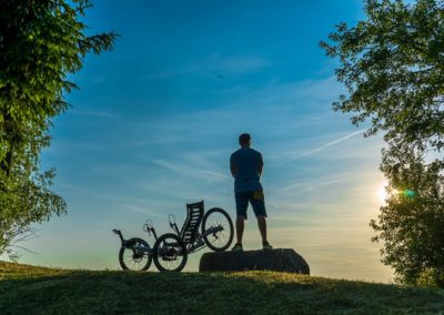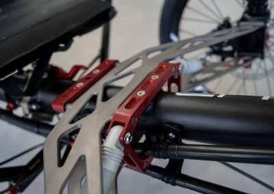 Ever since we started back in 2000, we have always thought that a bike should adapt to the rider and not the other way round. That’s why we used an adjustable seat for our first bike, in which both the angle and the pedal distance were adjustable. With each further development stage, we introduced a more accurate adjustment, until 2013, when we reached a stage of adjusting without positions. This concept is based on a sliding sleeve, which we produce in a straight version for our tricycles and some bicycles, as well as in a curved version for recumbents.