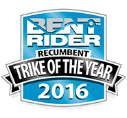 “We all had to wait awhile to see a full-suspension trike from AZUB but the vote count from our readers made it clear that the people think it was worth the wait. AZUB went in a very unconventional direction with the Ti-FLY’s front suspension, using titanium leaf springs in place of a more conventional fixed cruciform. The rest of the trike borrows heavily from the TRIcon. The end product is very impressive indeed.”