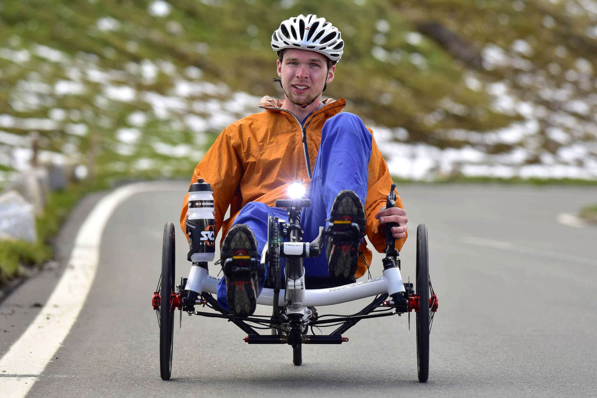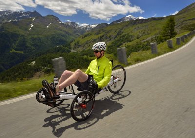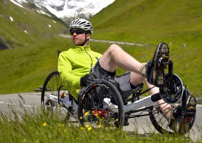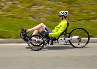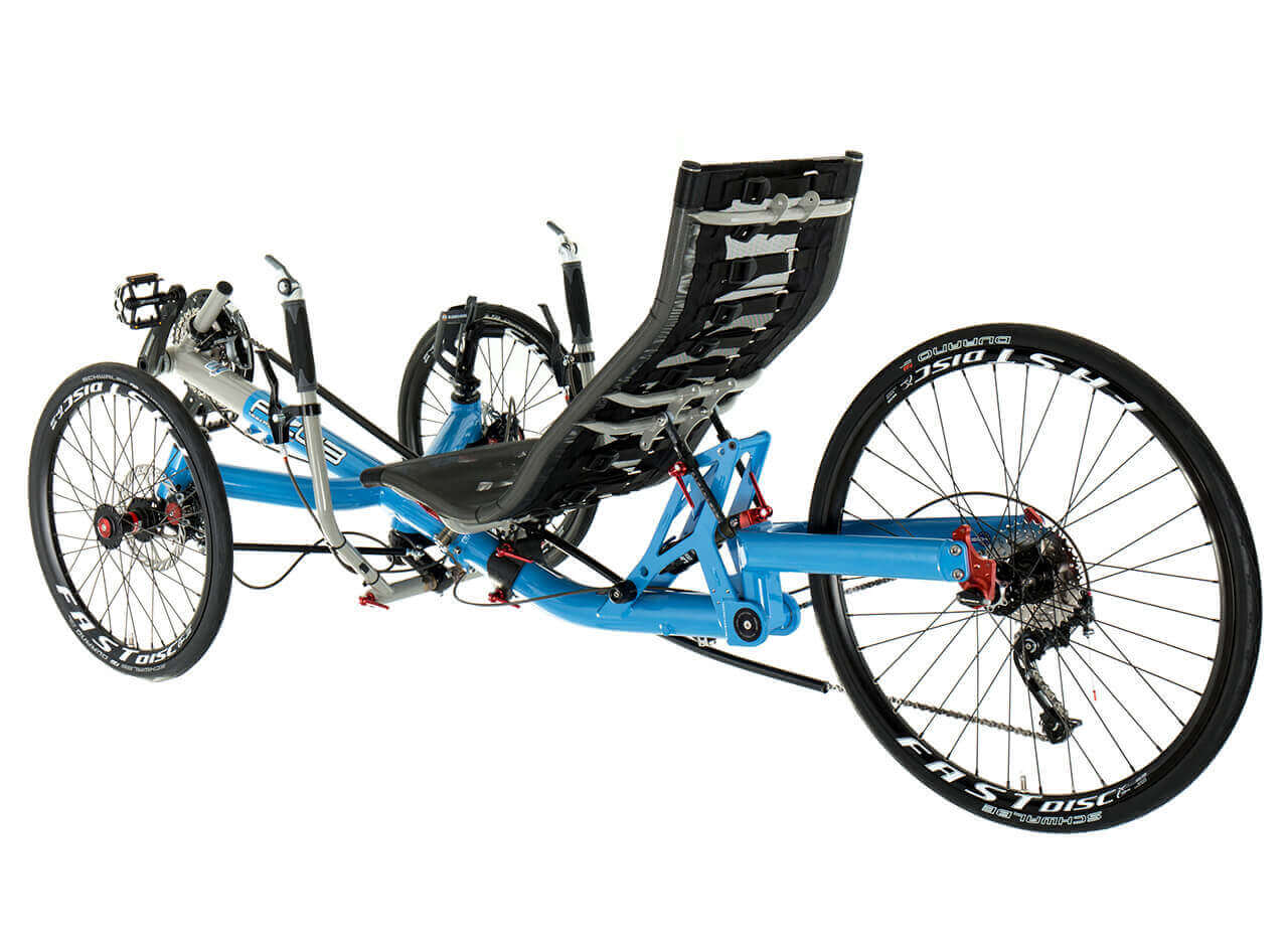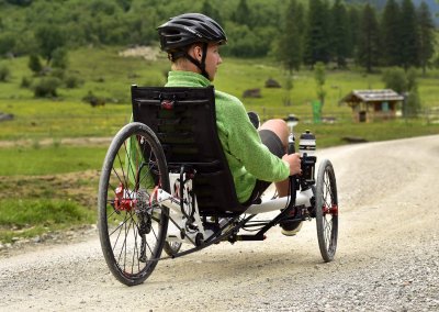 When you sit in the TRIcon 26 for the very first time, it immediately becomes clear why this trike has won the title Trike of the year 2015. Just settle comfortably in the ergonomic seat, sit back and start pedalling. The first two or three corners will give you a taste of the best advantages of our revolutionary 26” rear wheel solution. The shortest possible stiff fork with the 157mm wide Syntace solid through-axle design that we “borrowed” from mountain bikes, work an absolute miracle. What previously was unthinkable in the world of tricycles with a 26” rear wheel suspension has now become a reality. Yes, we are talking about fast cornering with minimal rear wheel flex while making you feel that the trike is absolutely stable and reacts accurately and instantly to any correction of the direction coming from the handlebars. And this feeling sure is absolutely exhilarating.