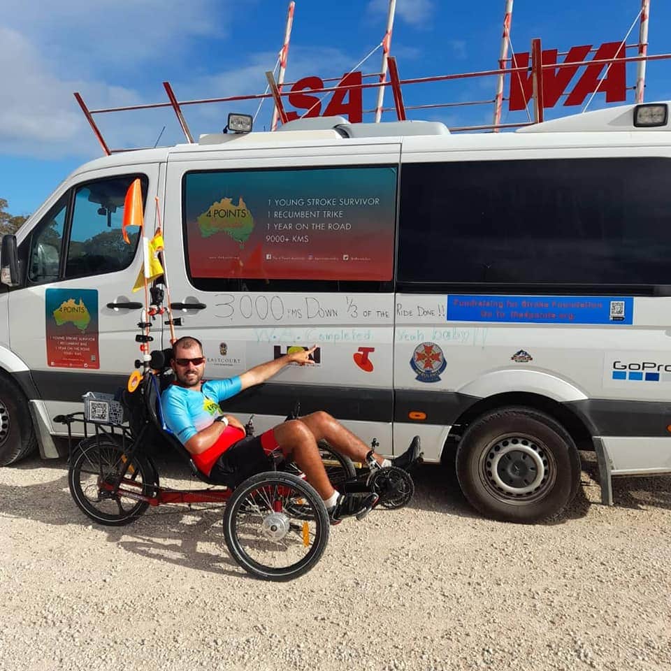 Last year he started his epic challenge of cycling 9 000 km / 5 600 miles to the four most extreme points of mainland Australia on a recumbent trike from Greenspeed. His main aim was to promote social inclusion and increase stroke awareness while raising money to help stroke survivors and improve stroke victim services. Unfornatenatully, just about 3000 km / 1850 miles into the journey, he was hit by a reckless car driver, had several severe injuries, and had to learn to walk again. For the second time in his life. That was in November 2021, and right now, one year after the accident, he is back on the trike, continuing his epic ride. Because the Greenspeed trike was wrecked, we offered Tommy a brand new AZUB TRIcon 26 electric trike with a Shimano Steps motor, so he has a comfortable vehicle to continue his adventure.