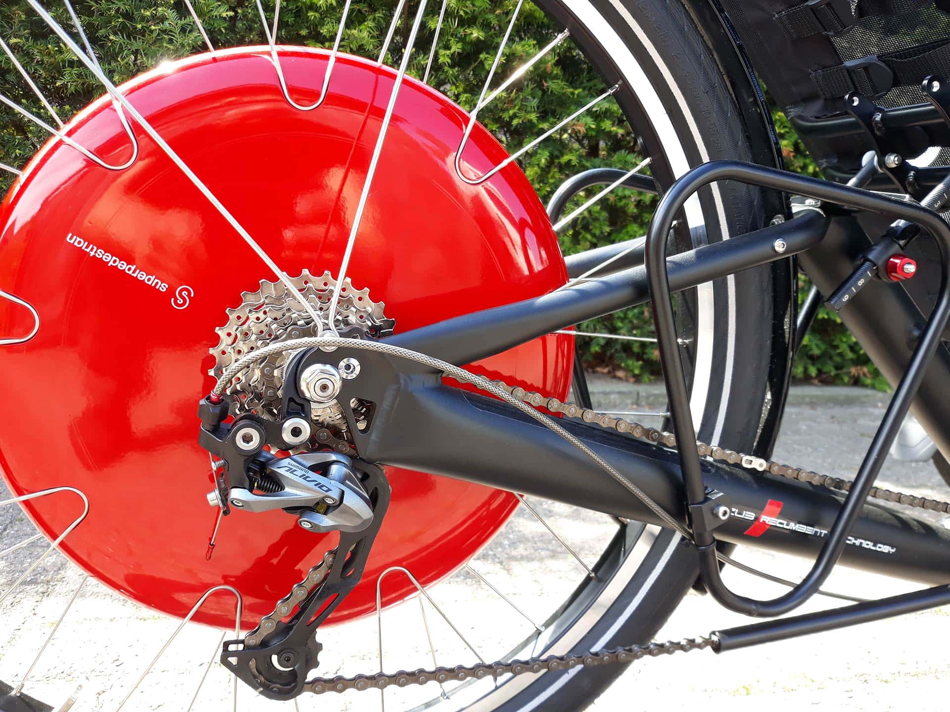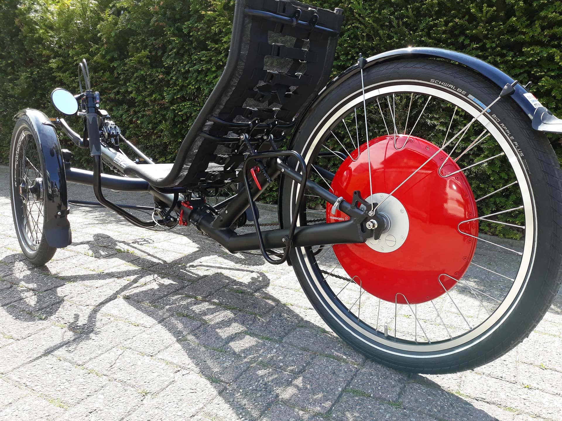 Our Dutch dealer Maia is testing the great looking red Copenhagen wheel on our T-Tris 26. The Copenhagen wheel is all-in-one electric motor with battery and also the controller inside and the rider operates it by using an app in the smartphone. Pretty nice and neat solution!
