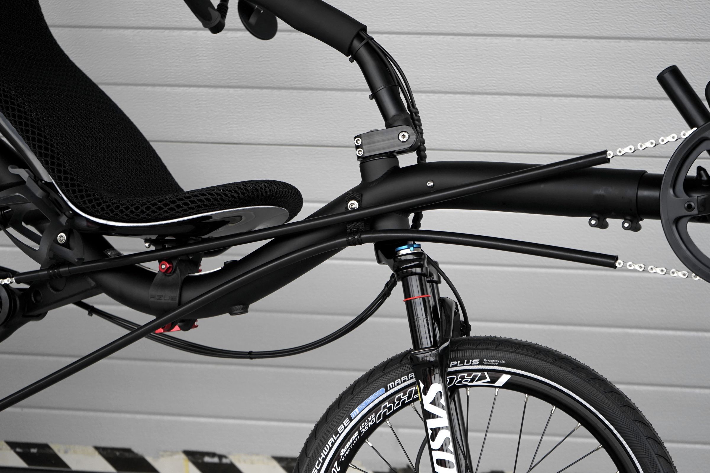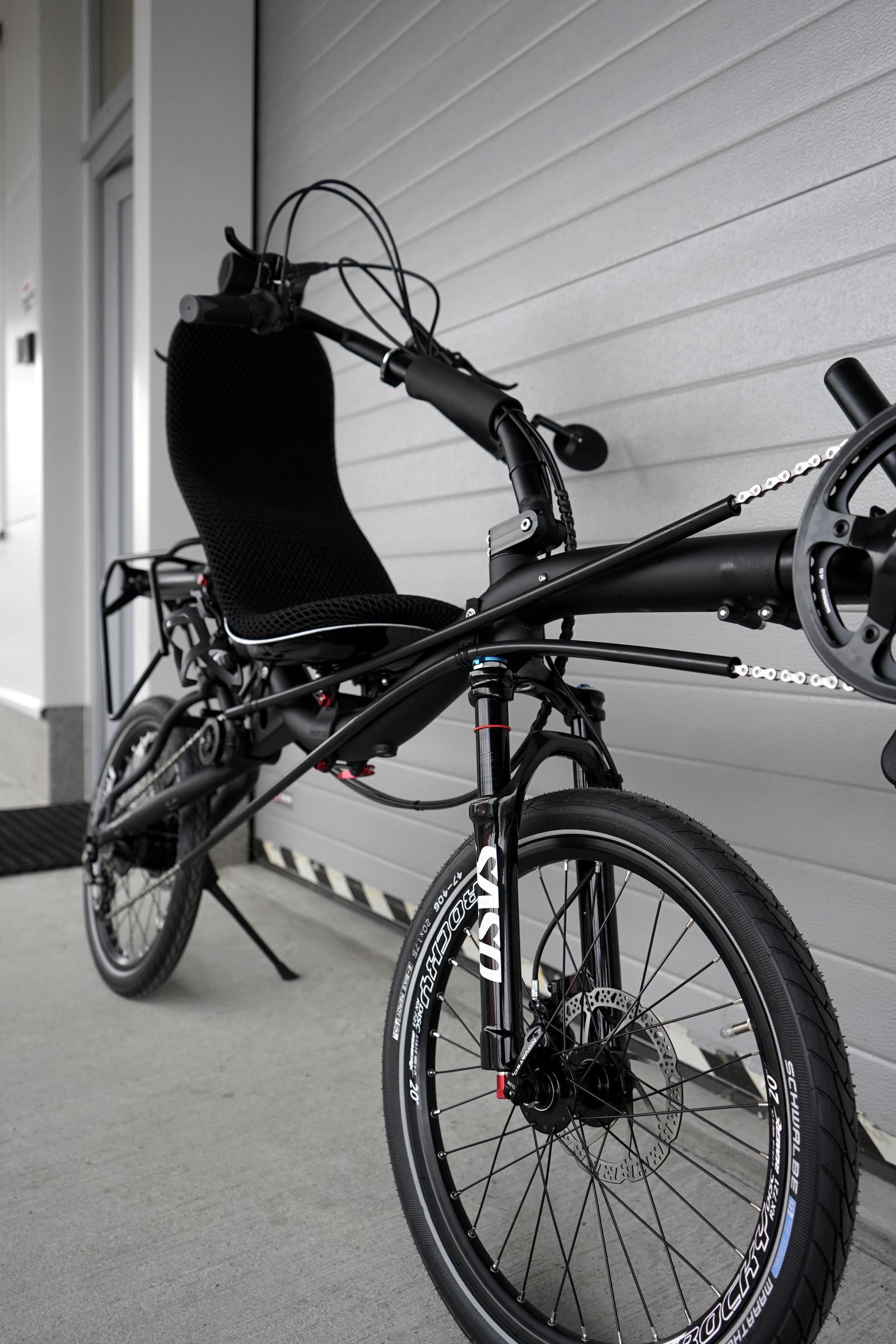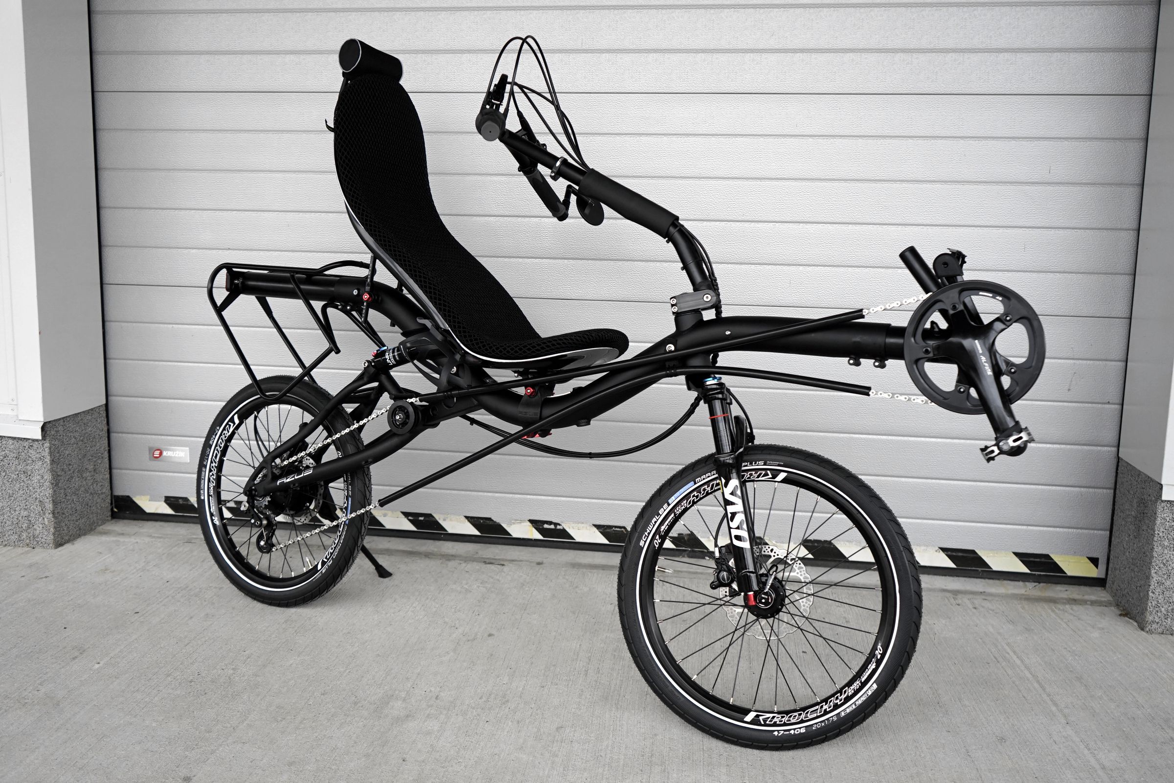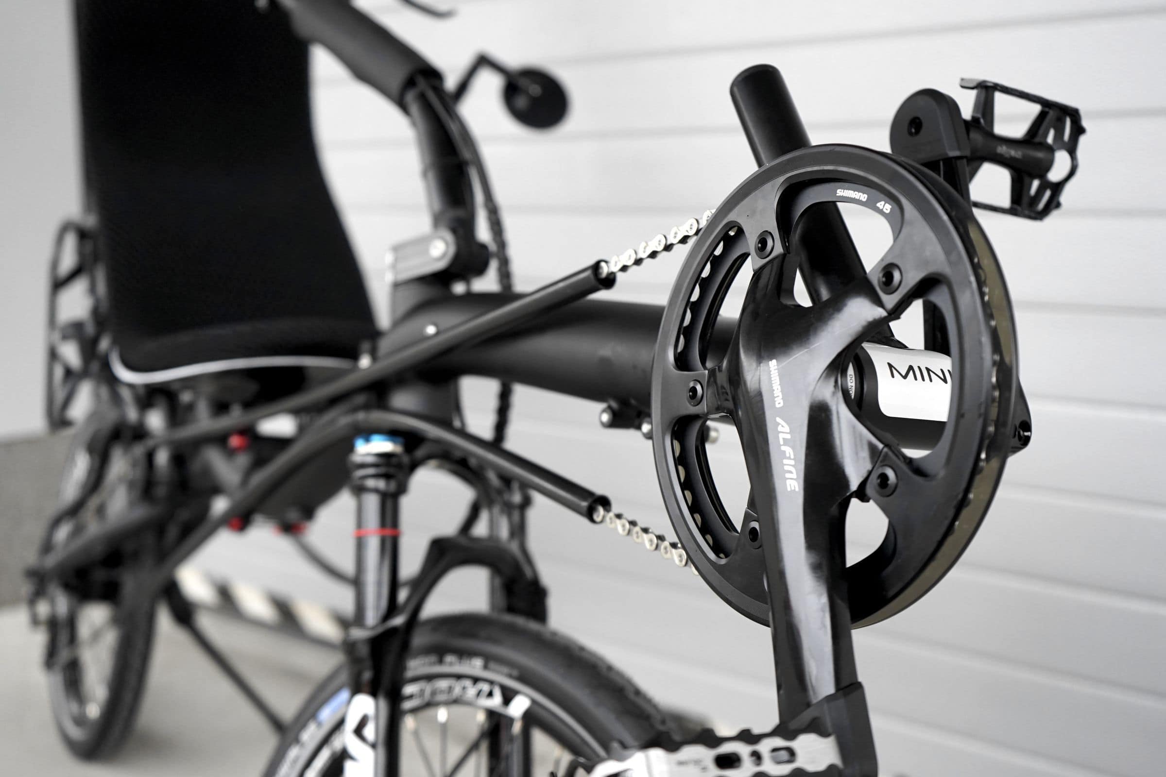 We present more trikes than two-wheelers in our blog, however, we are big fans of just two wheels and when we see nice little MINI it is just a fresh air for our hearts. And this one is really nice! It has the most popular over seat steering, SASO front suspension fork and SR Suntour UnAir air shock for maximum comfort and really cushy ride even on bad roads, 14 speed Rohloff internal rear hub providing 526% of range and allowing you to shift while standing and all that combined with TEKTRO Auriga hydraulic brakes for unquestionable stopping power. Do you know that Aurigas offers also parking brake function? A very nice feature you can’t appreciate until you have it.
