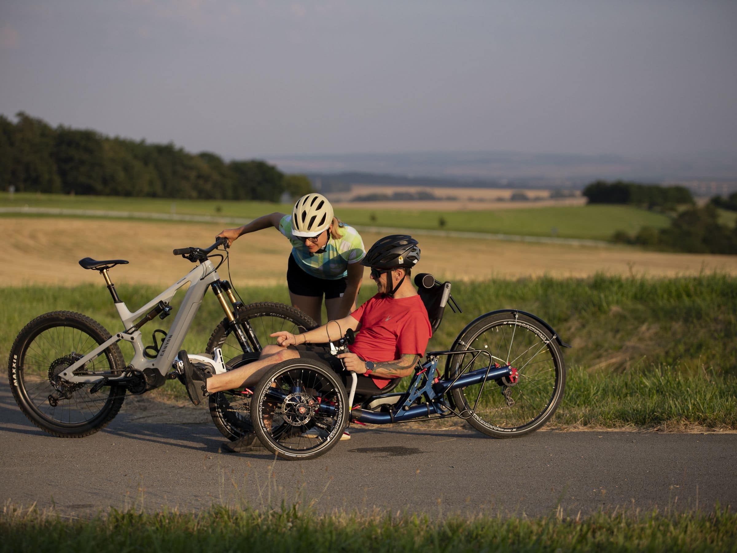 We like stories, so we also like this photostory of the Ti-FLY 26 full suspension electric trike with Shimano Steps E6100 and two friends experiencing one summer evening ride on two electric bikes. There is no more to say. Enjoy.