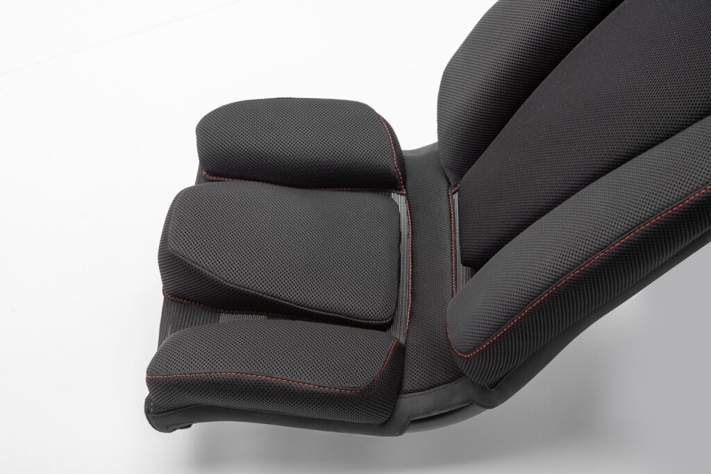 The critical point of the whole seat is its front part. We paid great attention to its shape. We spent endless time discussing and testing it as we had to reconcile two conflicting requirements. The first was enough space for pedaling and movement of the legs, and the second was preventing the rider’s body from sliding down from the seat. The result is a raised central nose filled with three different types of foam to provide sufficient support while offering blasting comfort even during long rides.
