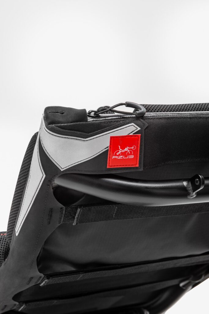 The entire construction of the cover is made of durable materials, and the robustness is further increased by using the well-known Hypalon material, which is located on the sides of the seat. Hypalon is used primarily in highly stressed products, for example, in the maritime industry or in producing various protective suits. On our seat, it helps to make it durable and tight it perfectly with straps on the back. These are equipped with plastic buckles and safety velcro.