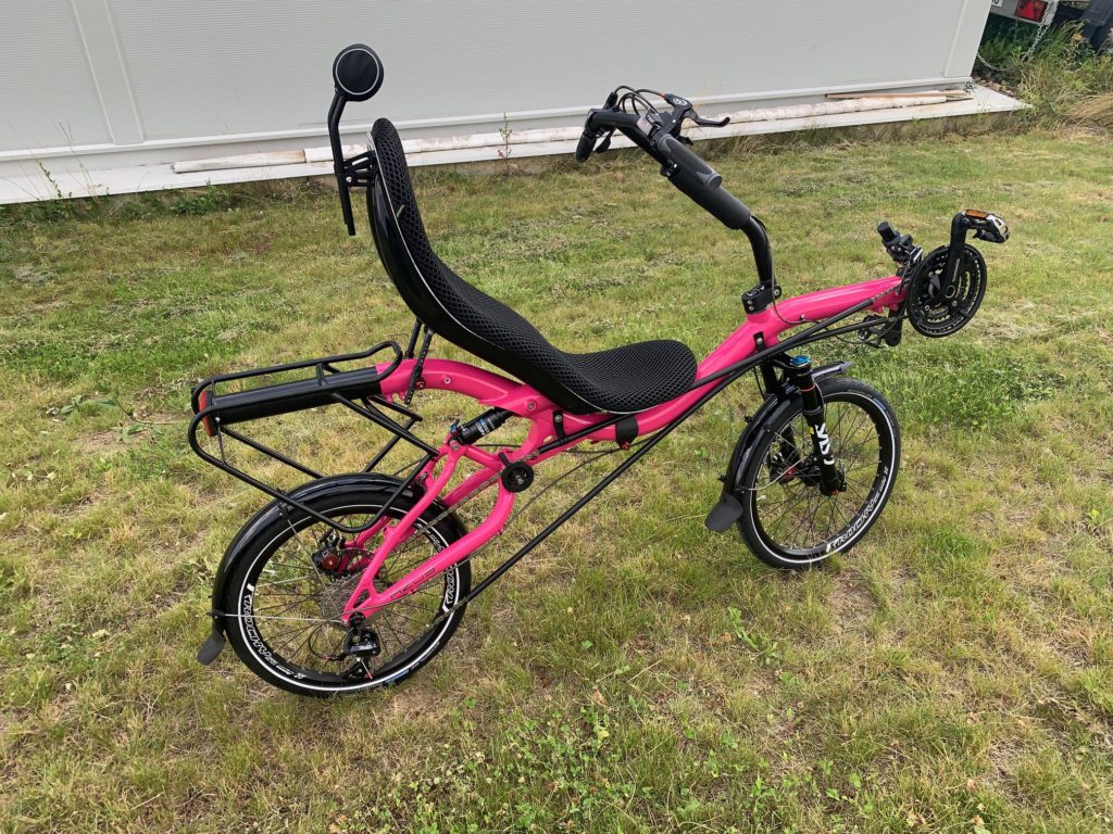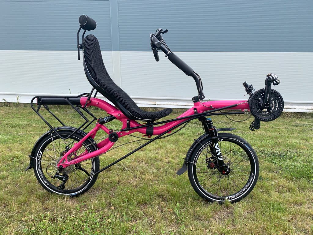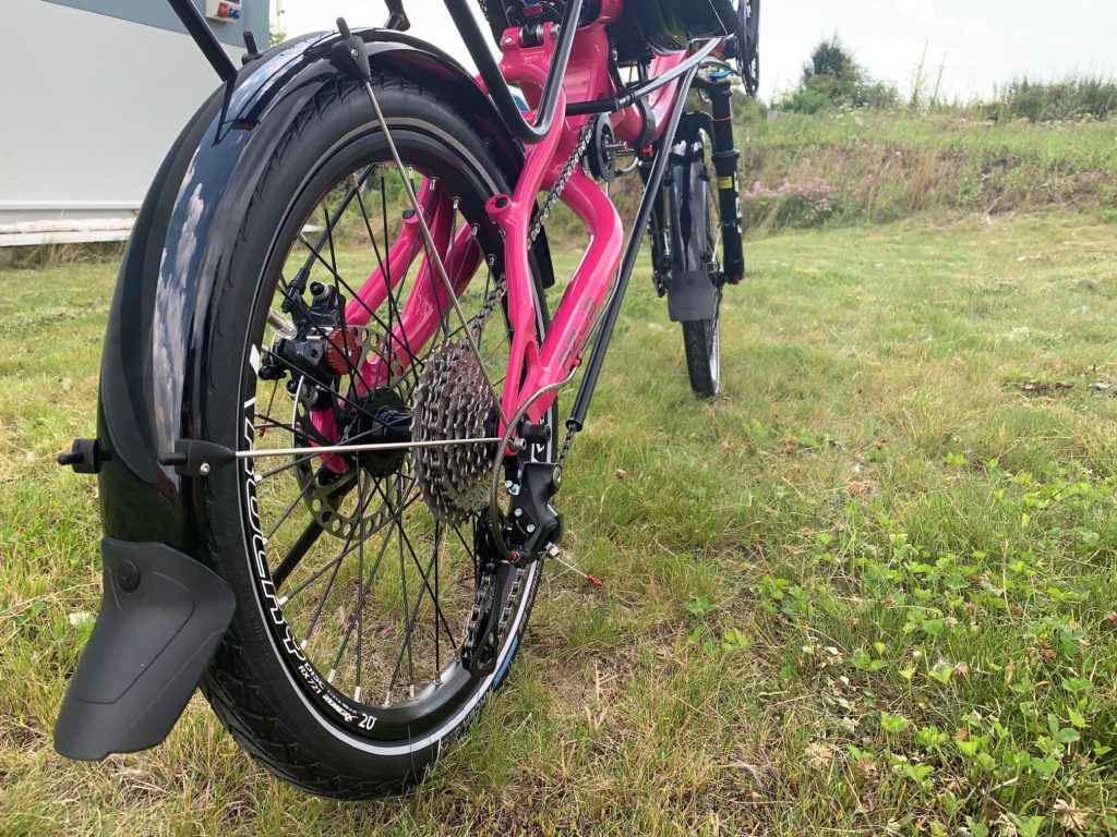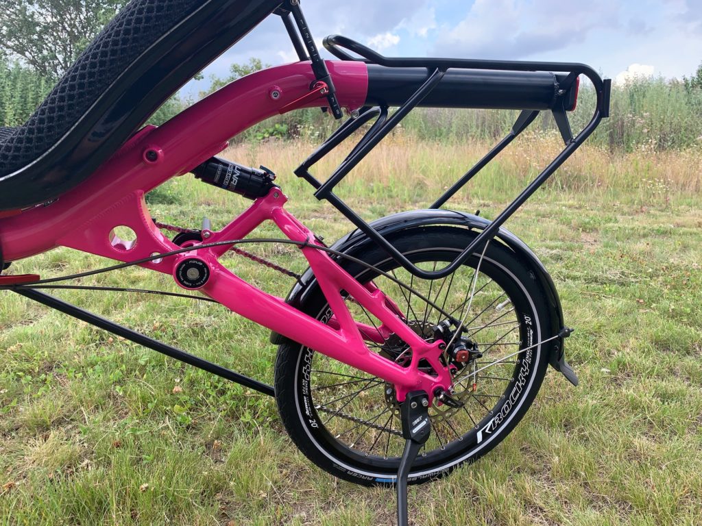 There is nothing really so special on this bike. No Pinion gearbox, no Rohloff, no FOX shock, nor special set of expedition racks, but the color makes it very unique. Thanks to our ColorShop option, customer could choose the very best suited color for her. And we gladly painted the frame in Telemagenta color RAL 4010. How do you like it?